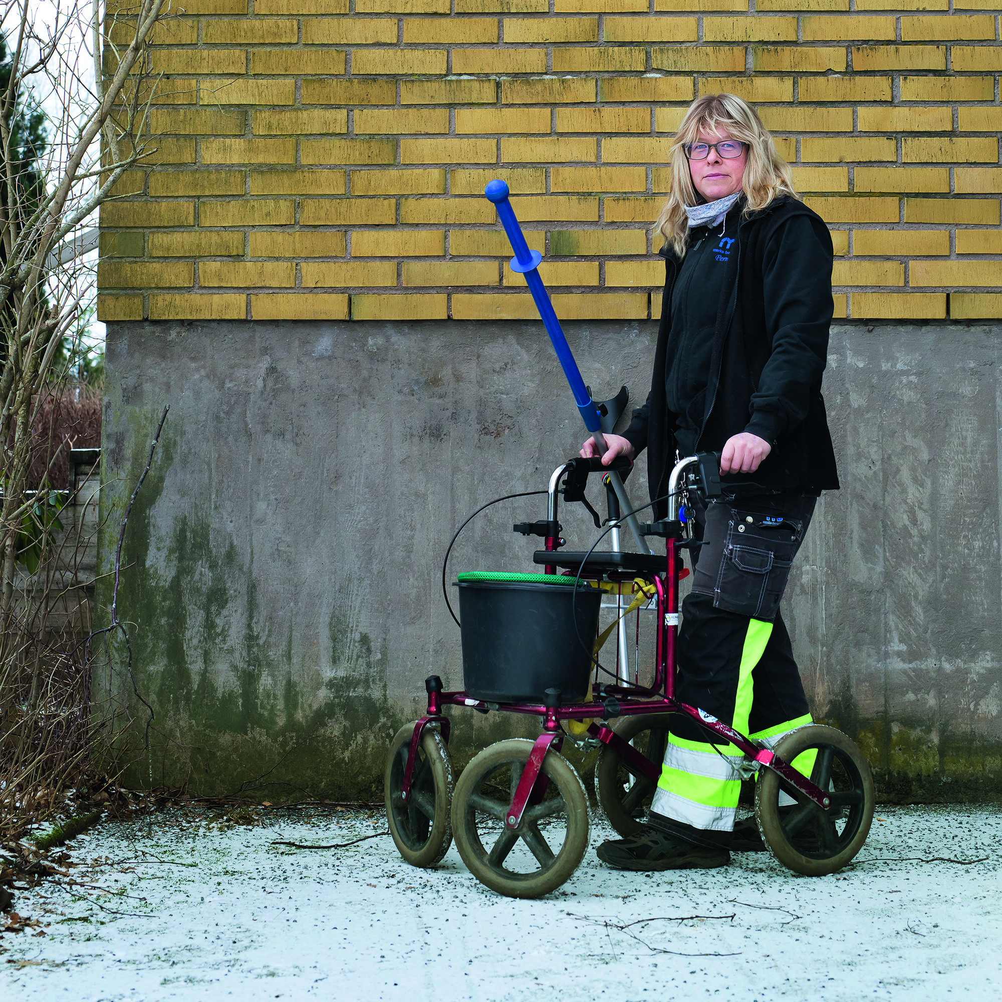 Precis som när tidningen träffade henne förra gången, fortsätter fastighetsskötaren att kämpa på med 75 procent – annars skulle ekonomin inte gå ihop. Hon gör det tack vare sin rullator, en samarbetsvillig chef och stöttande arbetskamrater.