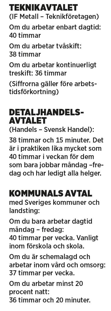 Så lång är en normal arbetsvecka i några avtal