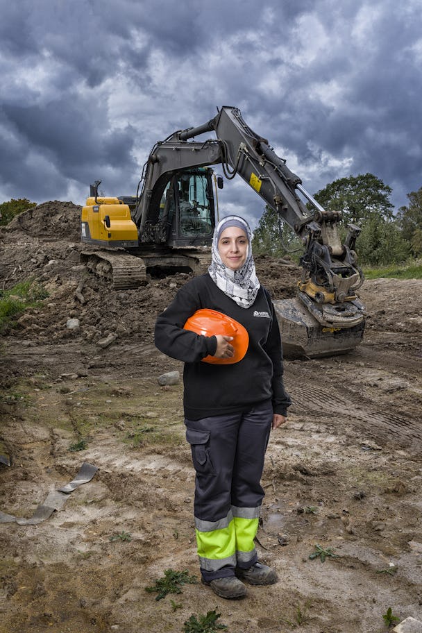 I dag jobbar Ghalia Alhindi på Örebro schakt och mark AB som har sitt kontor i Örebro. Hennes arbetsplats är dock just nu i Kumla där hon gräver husgrunder.