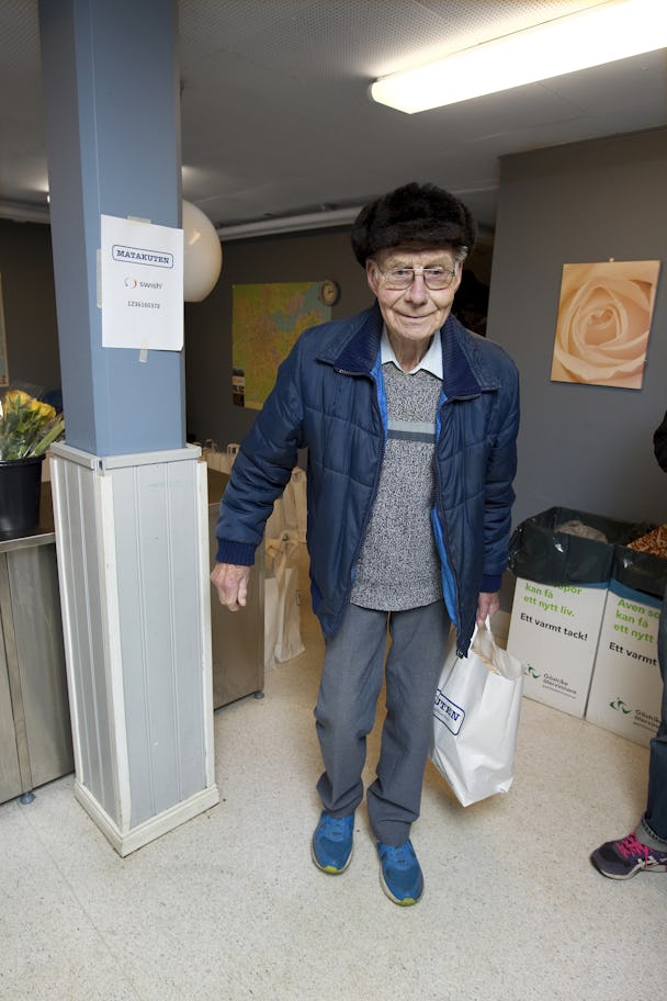 Nisse Olsson, 86 år, tror inte att han skulle klarat sig utan Matakuten. ”Du vet, pensionen är så dålig.”