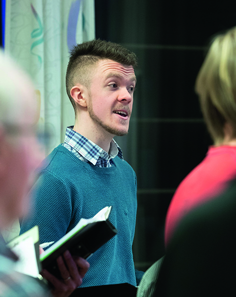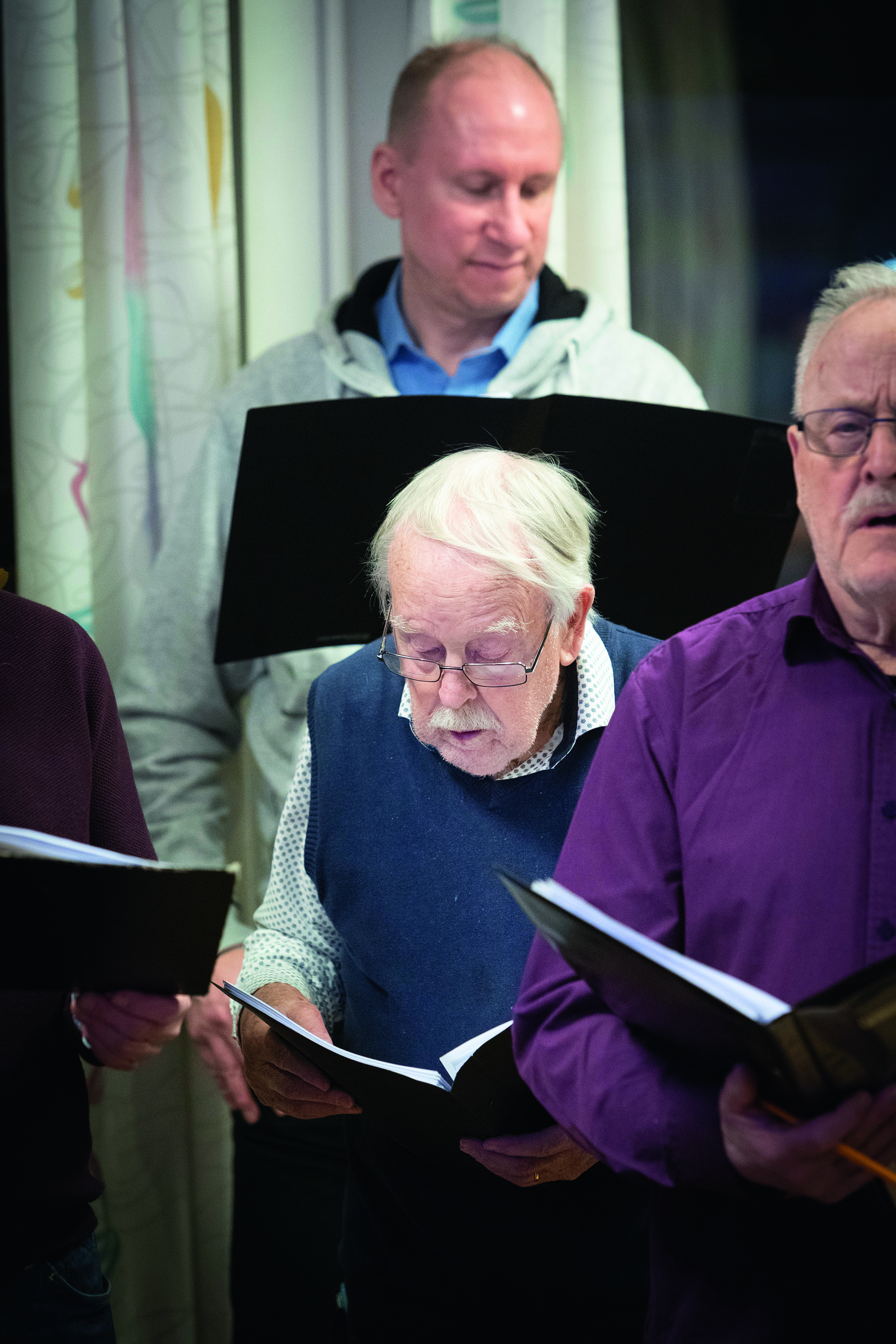 Manskörens äldste medlem är 90 år. Yngst är Andreas Jonsson, 19 år.