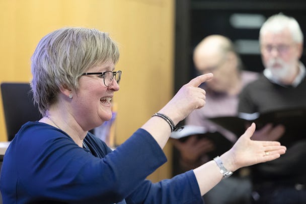 – Okej, nu kör vi från början. Börja dagen med ett ryck, säger dirigenten Elisabeth Backhaus.