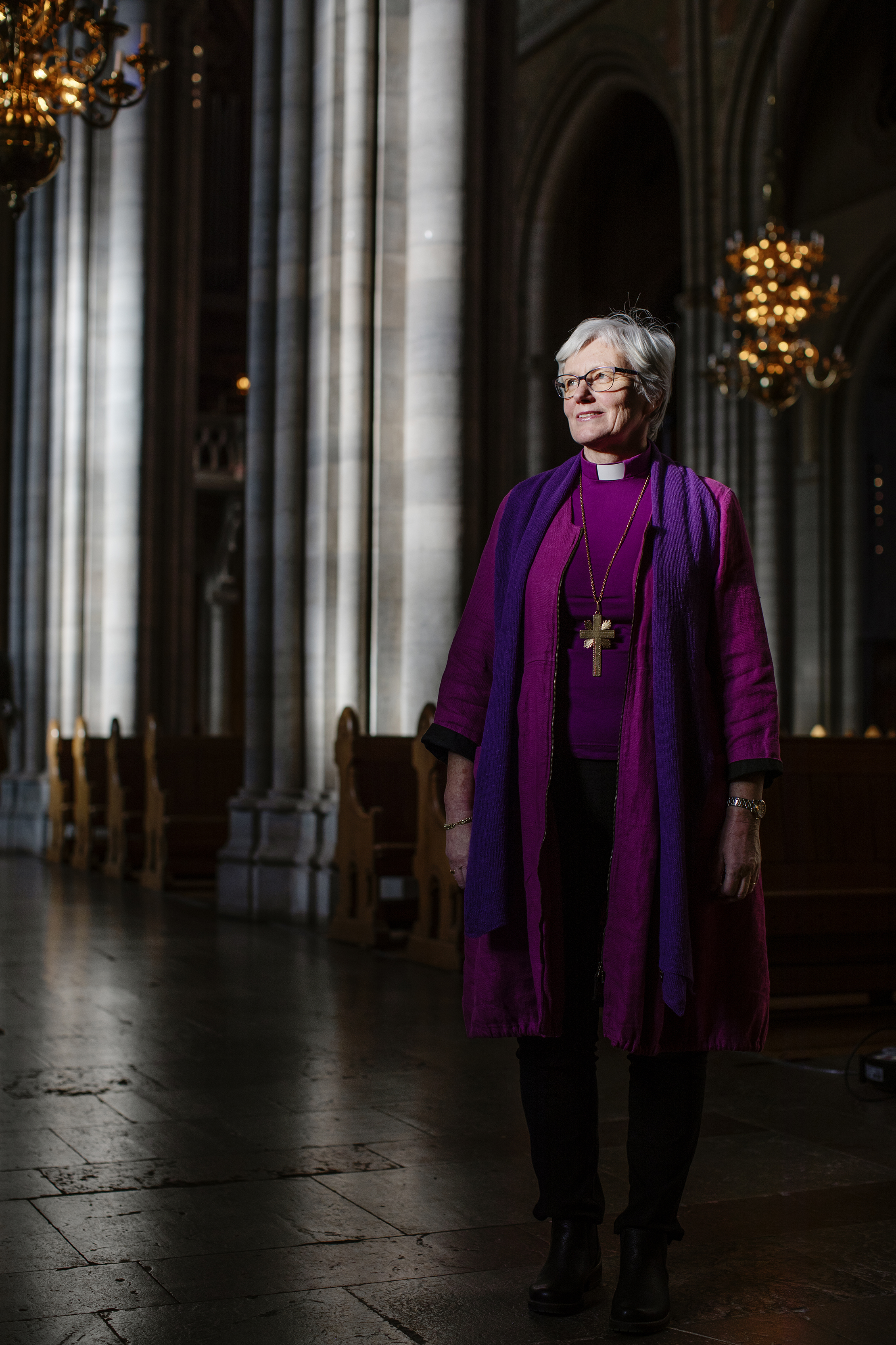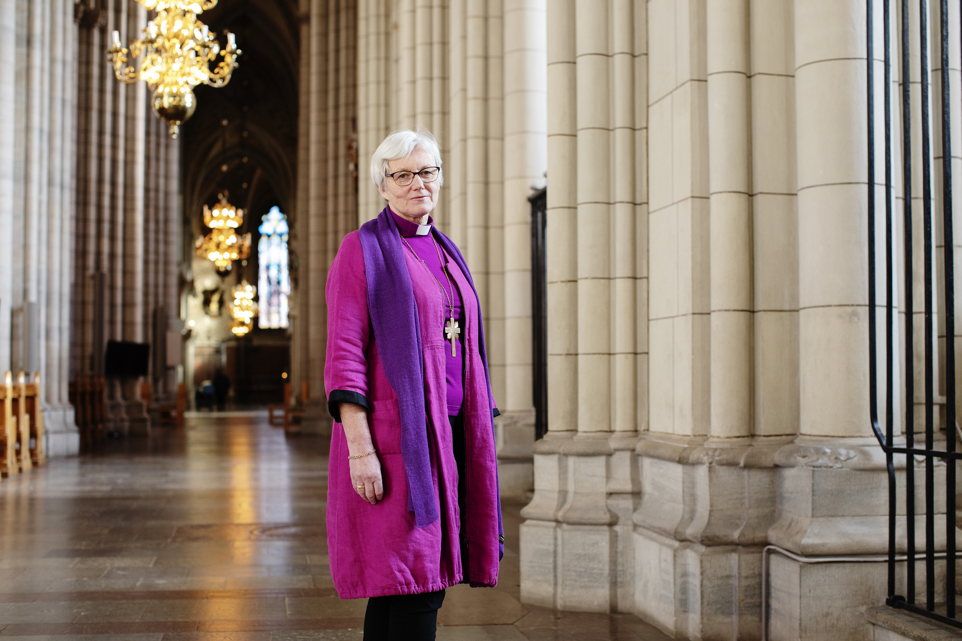 När fotografen vill hitta det rätta ljuset i sidoskeppet – skapelsens ljus, ska ärkebiskopen själv senare kalla det – hejdas hon av besökare som vill byta några ord.