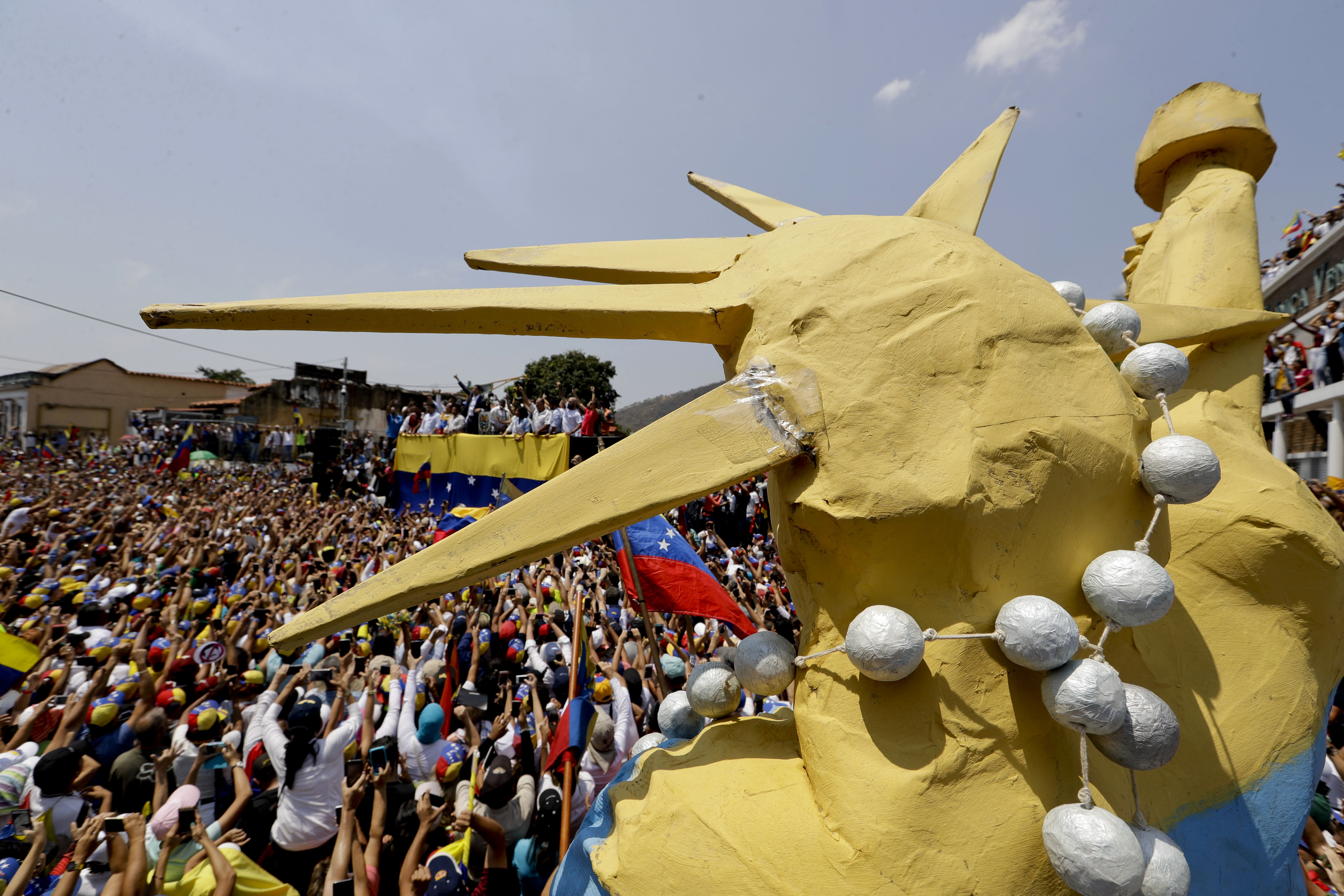 Supporters cheer for Venezuelan opposition leader Juan Guaidó, who has declared himself interim president.
