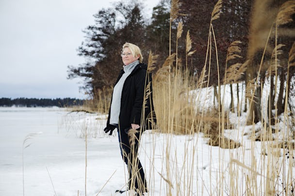 Annica Barning står i stället stabilt på marken i sina nyinköpta gummistövlar med ullsockor i och broddar under, håller gärna ut en stadig och stark arm åt en reporter med hala sulor.