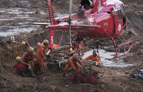 Räddningsarbetare tar upp lik från lermassorna efter dammkollapsen i Brasilien.