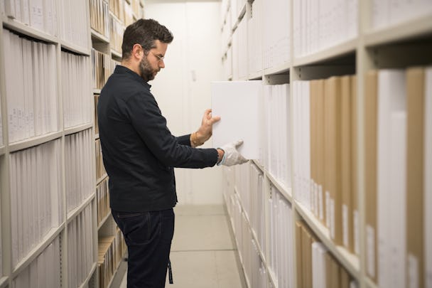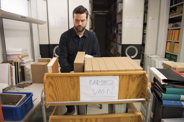 – Lite ångest faktiskt, säger arkivarien och ler svagt mot högarna som han inte riktigt vet var de hör hemma, ännu. Innehållet i pärmen med rubriken ”Jag har tänkt och tyckt, 1985 till 1996” är ett exempel. Liksom ”Fotografier Personal 1990-tal”. Men det lurigare materialet är inte mer än en halv hyllmeter, påminner sig Bartosz Petryk om.