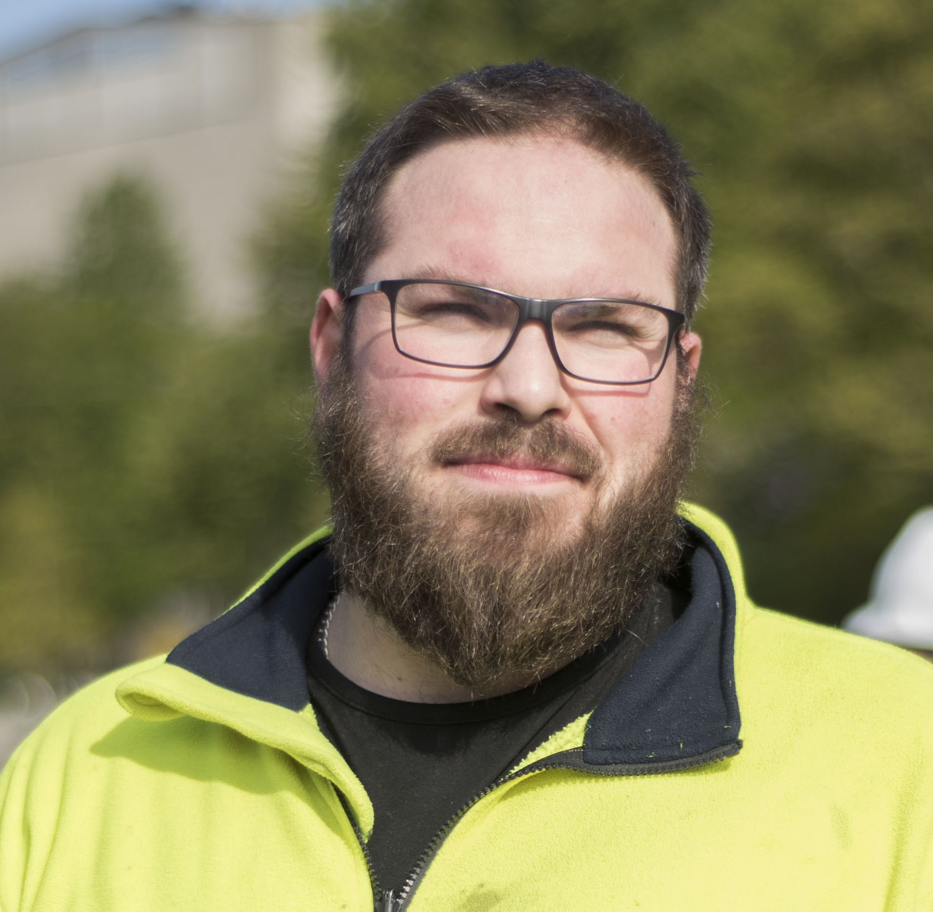 Byggnads Skånes ordförande Johan Sjöberg har sett till att det bjuds på korv under byggnadsarbetarnas morgonrast. På köpet får de ta del av Johan Danielssons EU-kampanj.