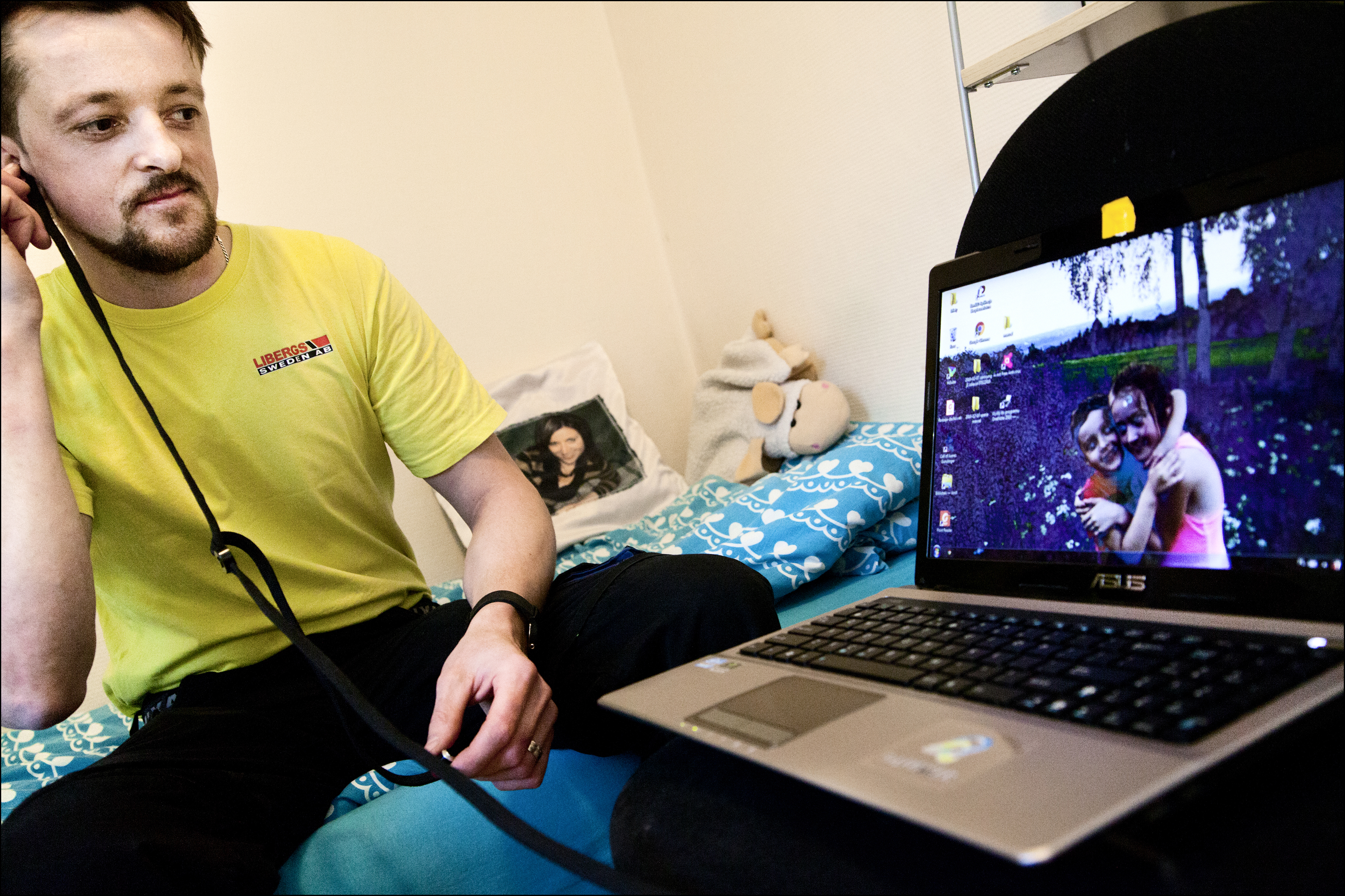 En torsdagskväll i mars pratar han, som vanligt, med henne och barnen via Skype.