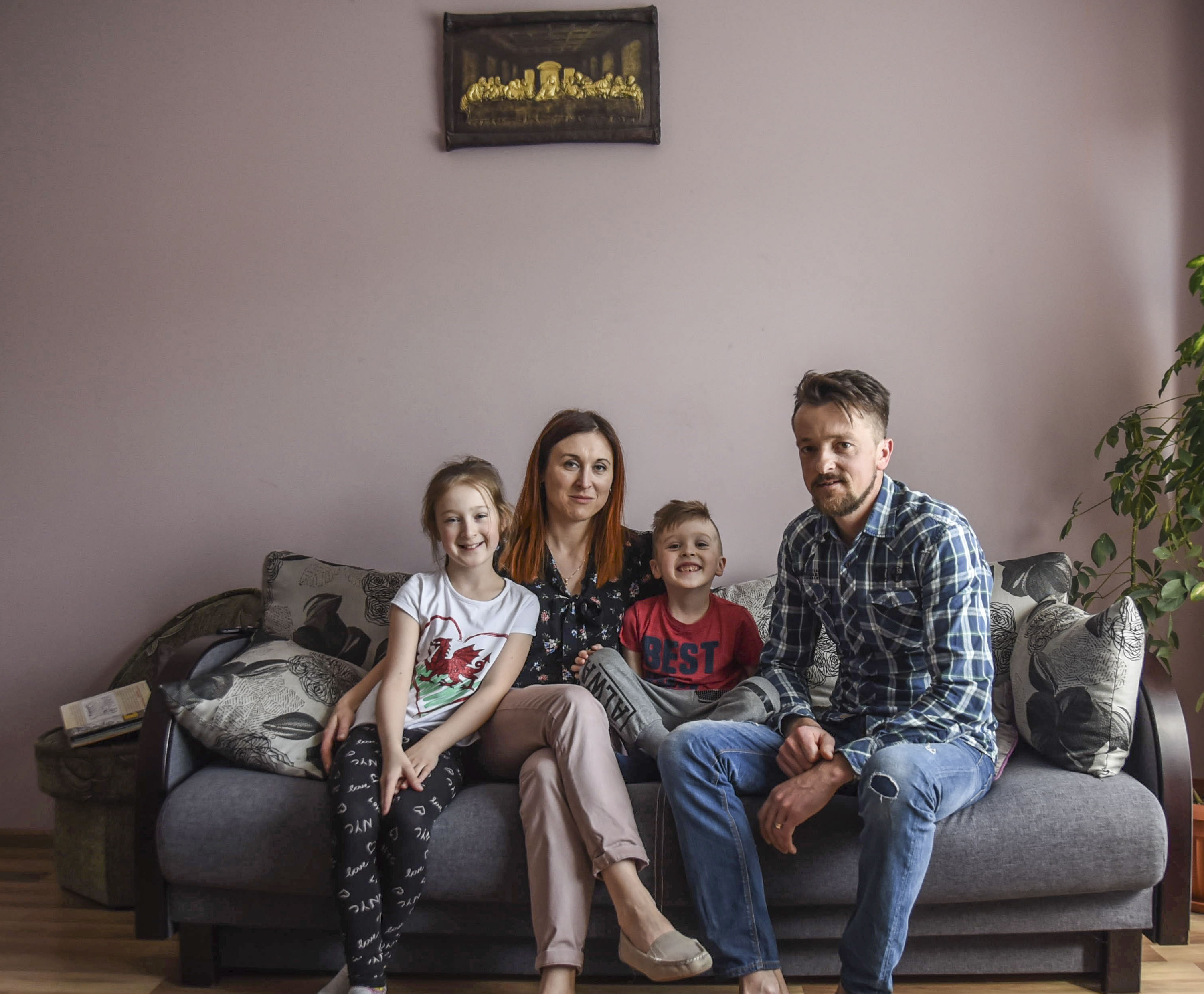 Martyna, Agnieszka, Marcel och Andrzej Jamka samlade i huset i södra Polen, dit Andrzej återvänder mellan arbetspassen i Sverige.