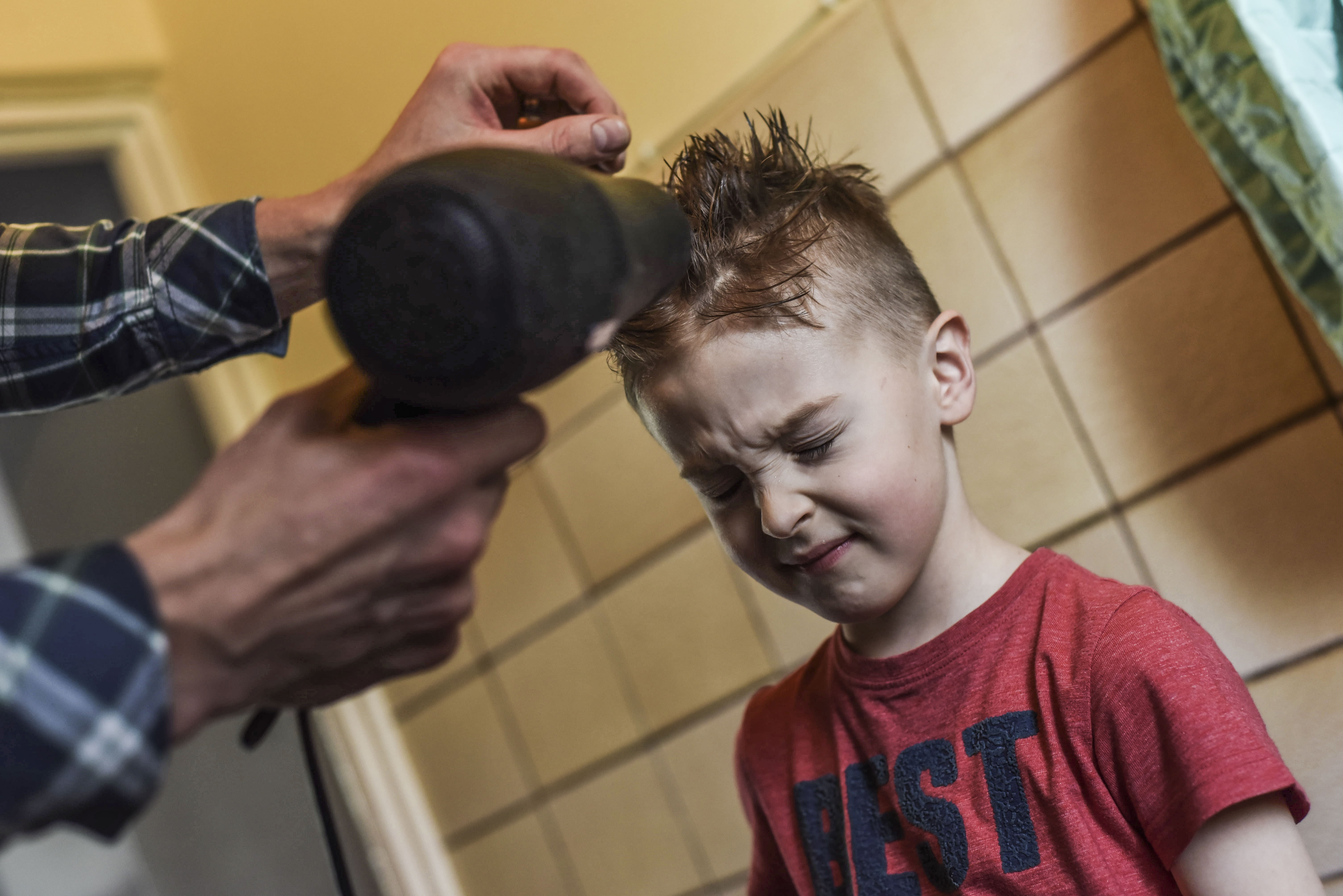 Far och son ordnar alltid håret tillsammans hemma i Polen, där de också gör gemensamma frisörbesök.