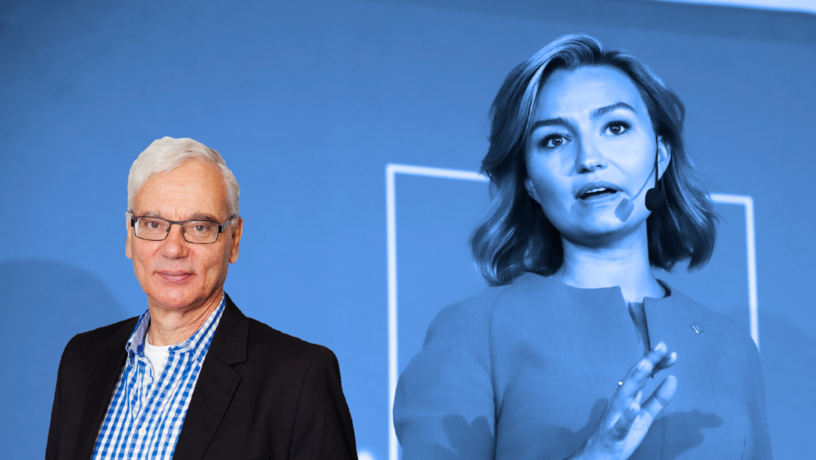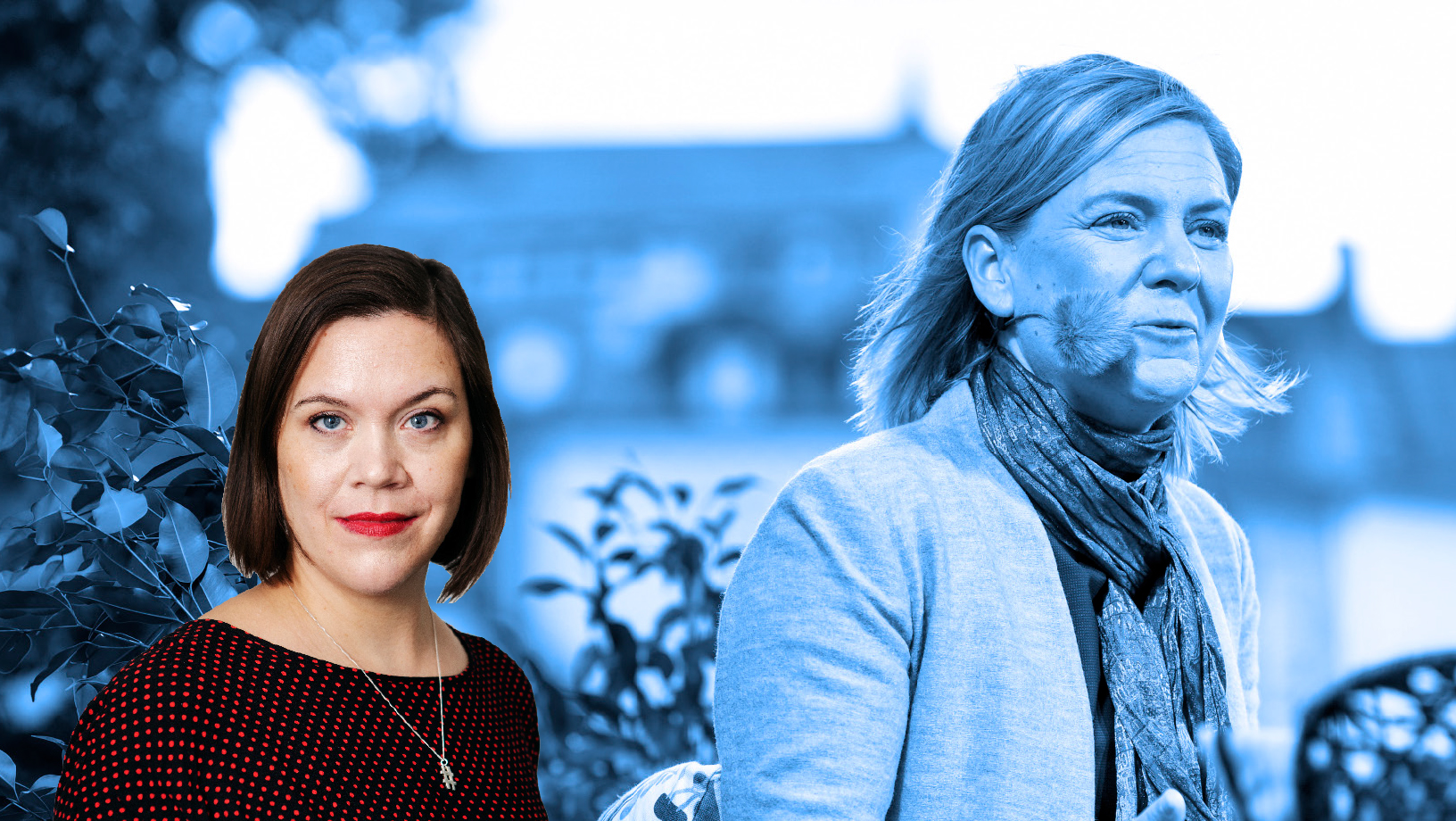 Framför honom står Emilia Winberg, ansvarig för LO:s närvaro under Almedalen, och till vardags kommunikatör på organisationen.