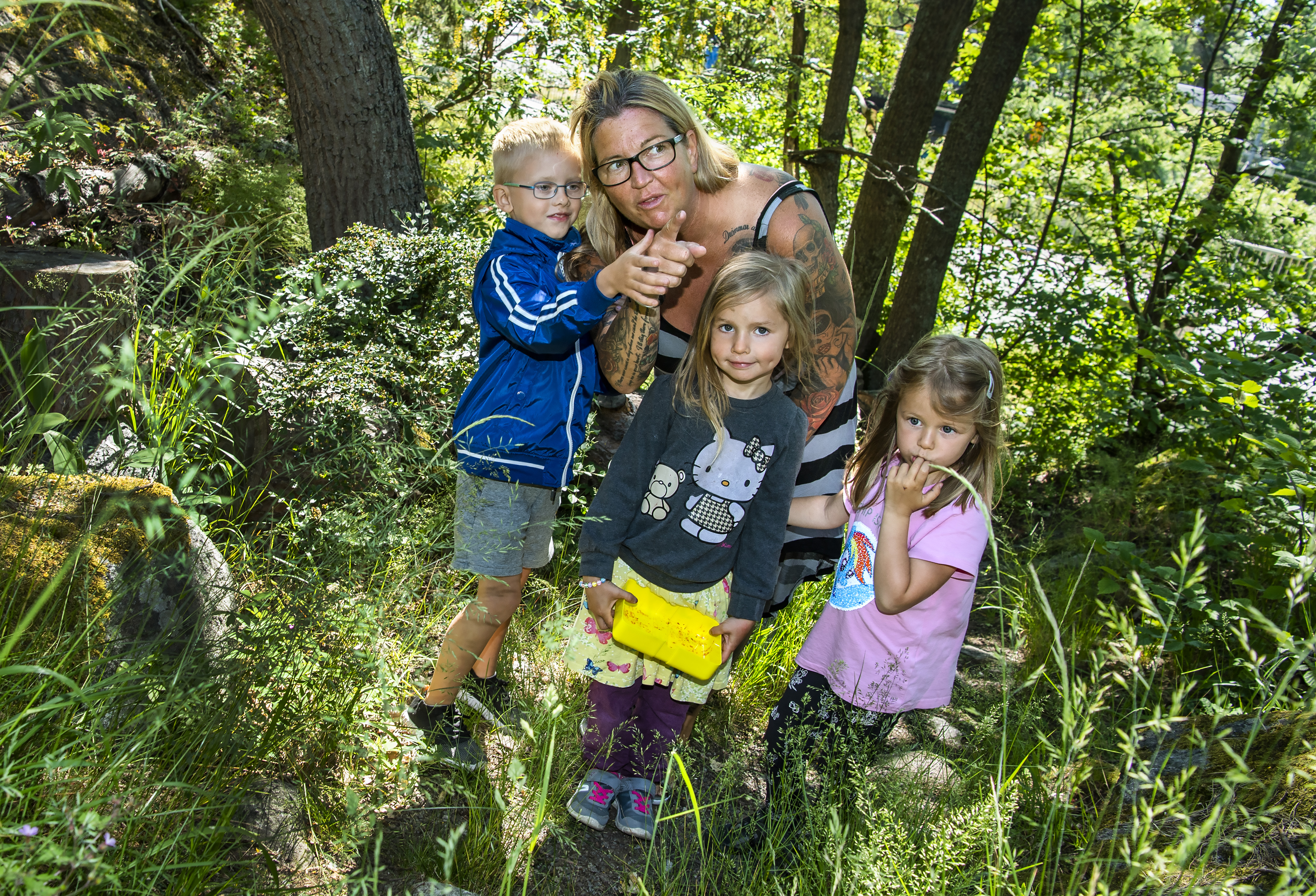 Anländer till Knytte-skogen (Mulle). Ankie klär ut sig till ”Skräpan” och barnen får visa hur man ska bete sig i naturen.
