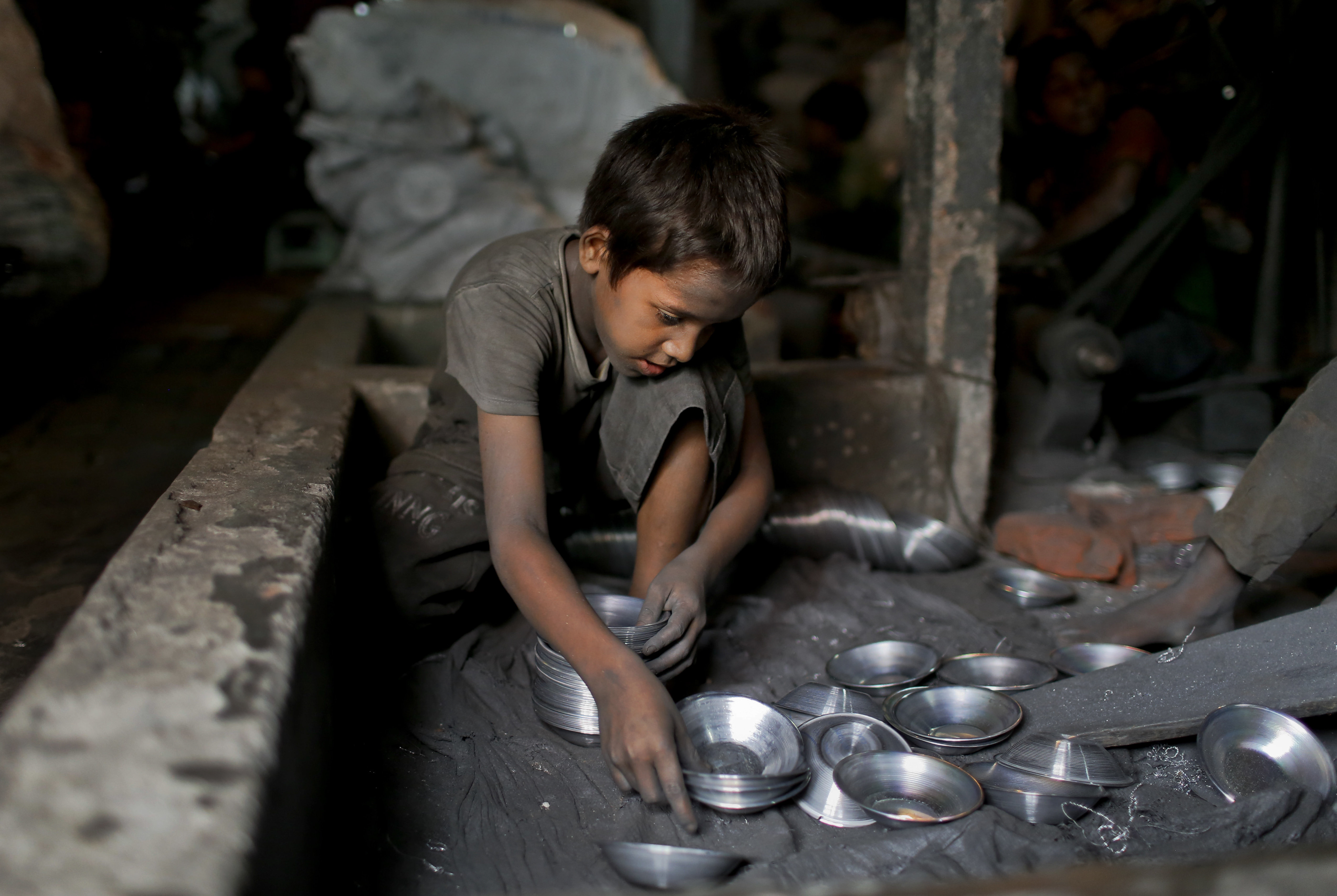 En pojke arbetar i en fabrik i Dhaka, Bangladesh. Arkivbild från 2012.