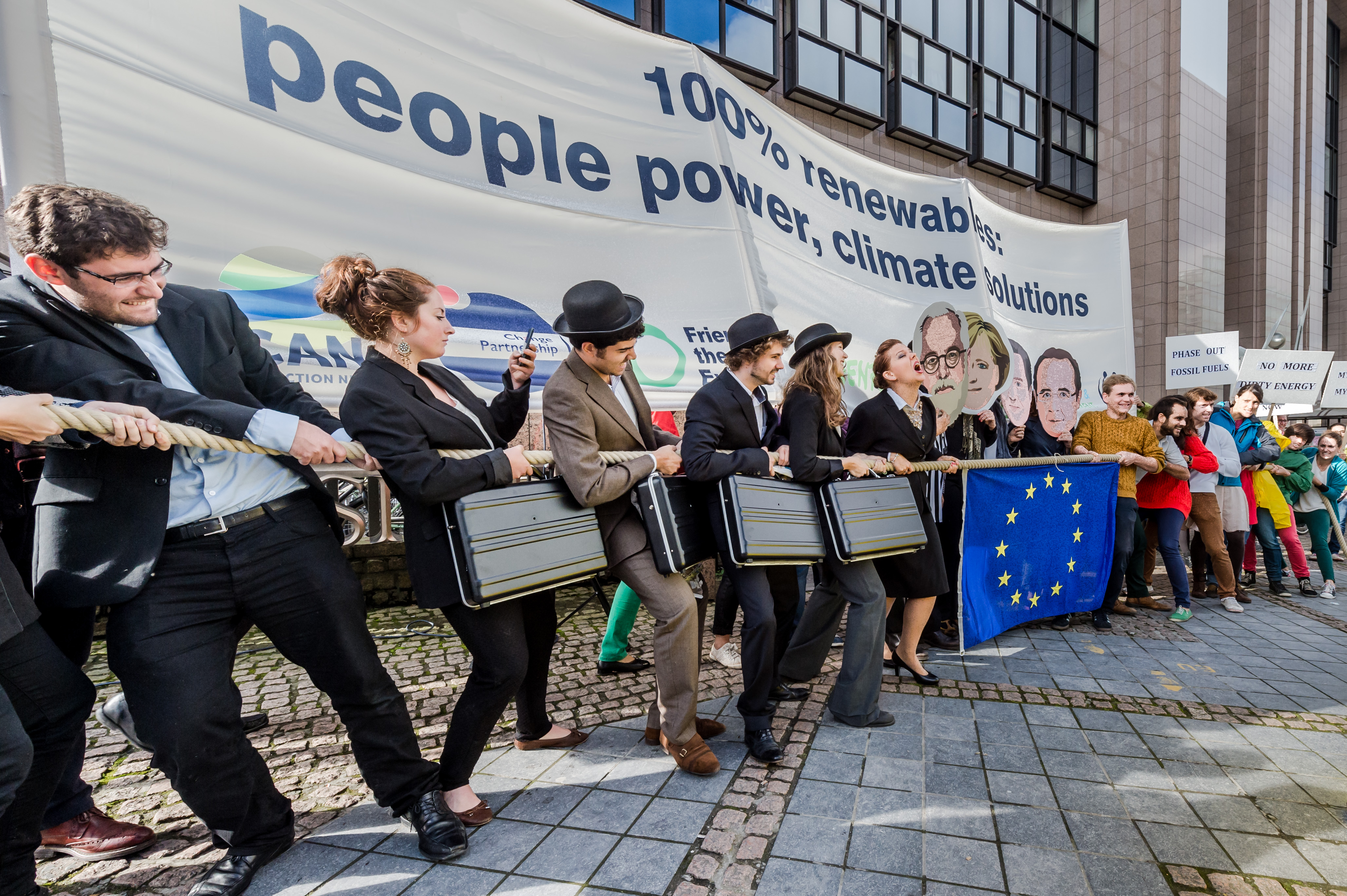 Klimataktivister utanför Europaparlamentet demonstrerar för mer förnybar energi i EU. Arkivbild från 2015.
