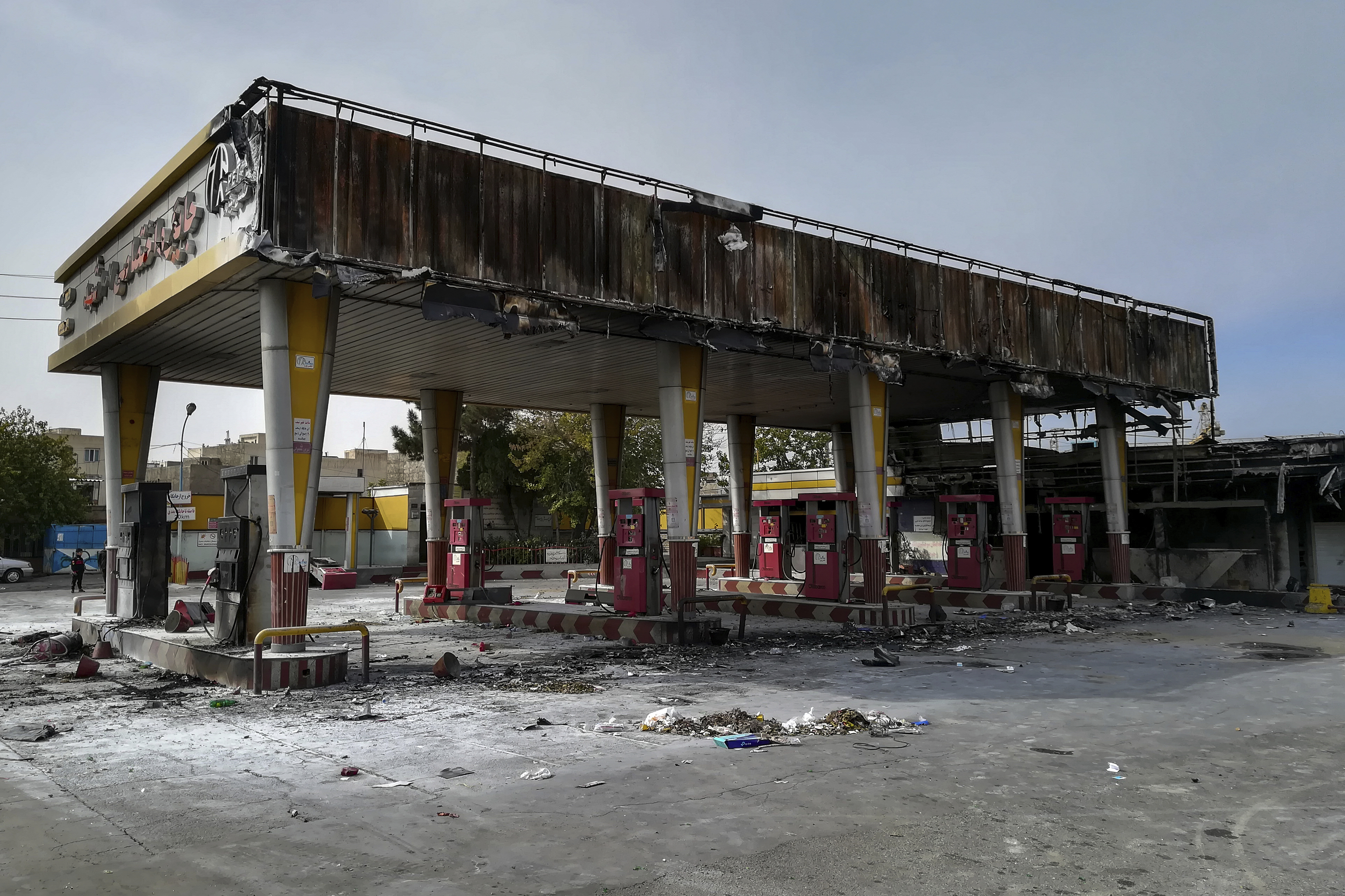 Stora demonstrationer och våldsamma sammandrabbningar sker runt om i Iran efter att bensinpriset höjts kraftigt. (Abdolvahed Mirzazadeh/ISNA via AP) VAH107