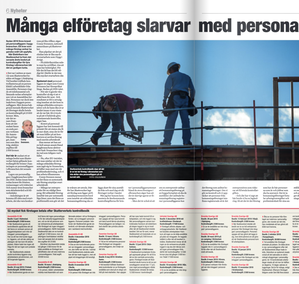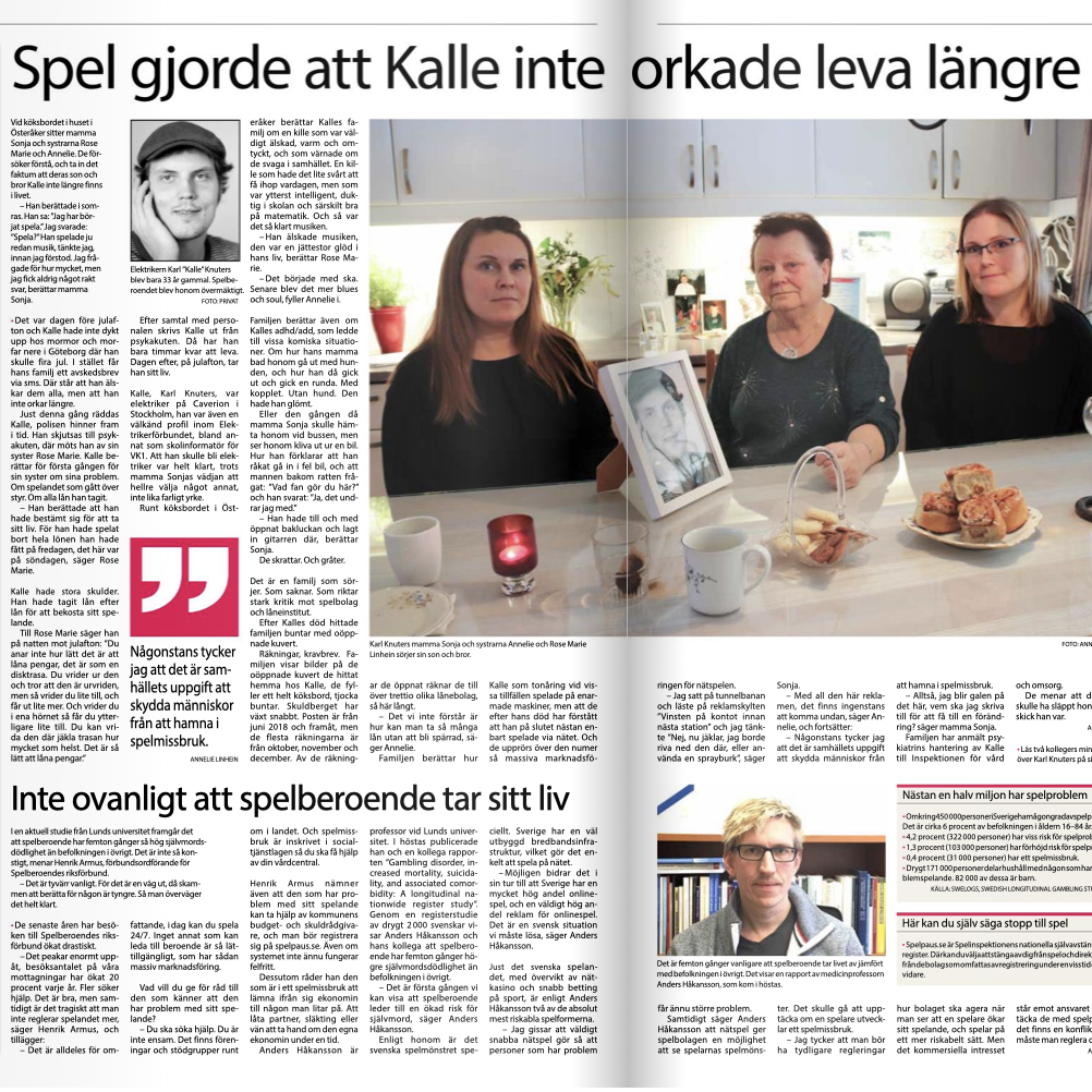 Bland annat träffade tidningen elektrikern Karl Knuters familj som lyfte frågan om spelmissbruk och den massiva spelreklamen. Vi besökte reservkraftverket i Karlshamn, pratade med före detta fackligt aktiva som bytt sida och granskade hanteringen av personalliggare i elbranschen.