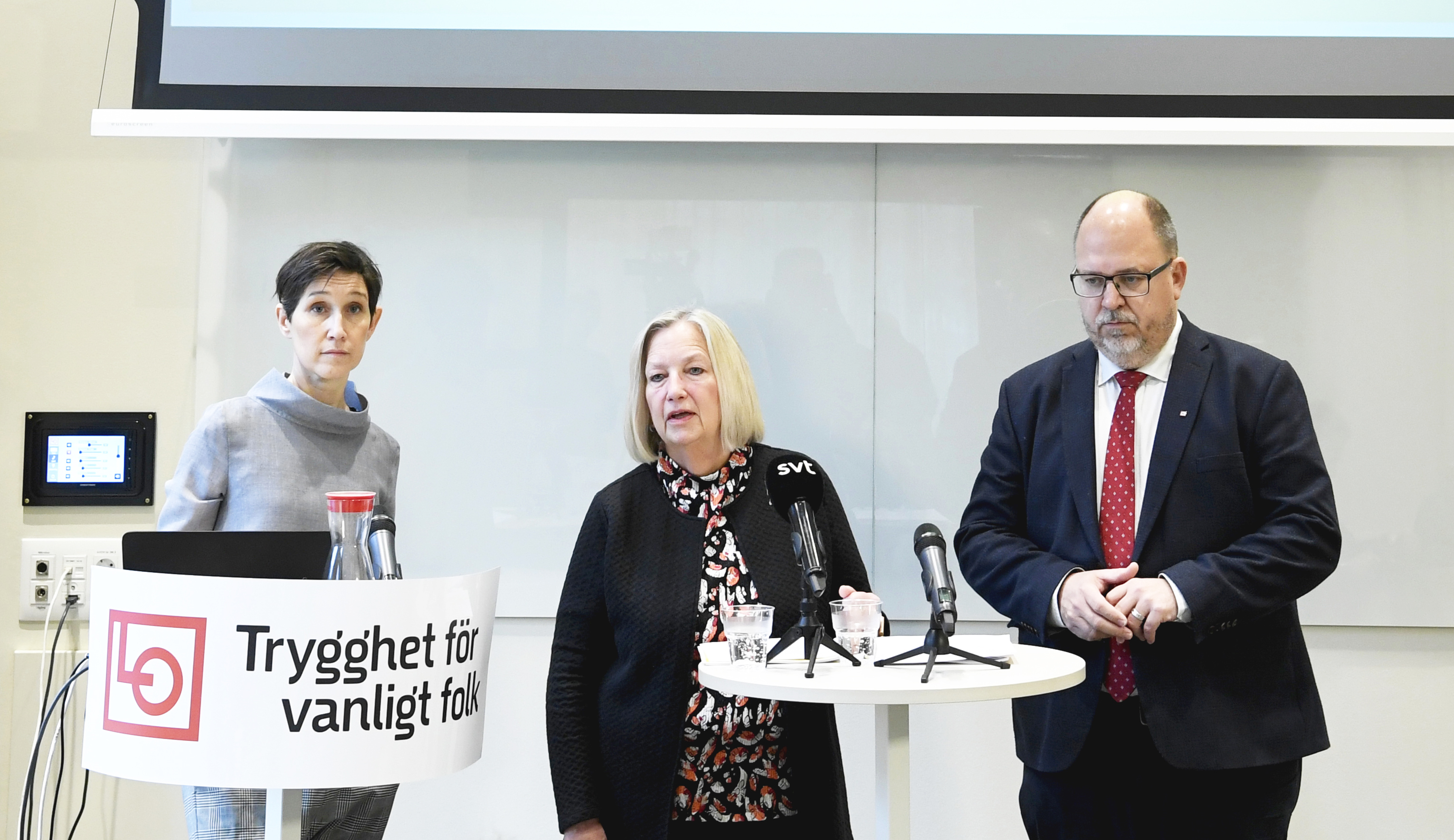 Joa Bergold, rapportförfattare, Berit Müllerström, LO:s andre vice ordförande, och Karl-Petter Thorwaldsson, LO:s ordförande under presentationen av jämställdhetsbarometern.