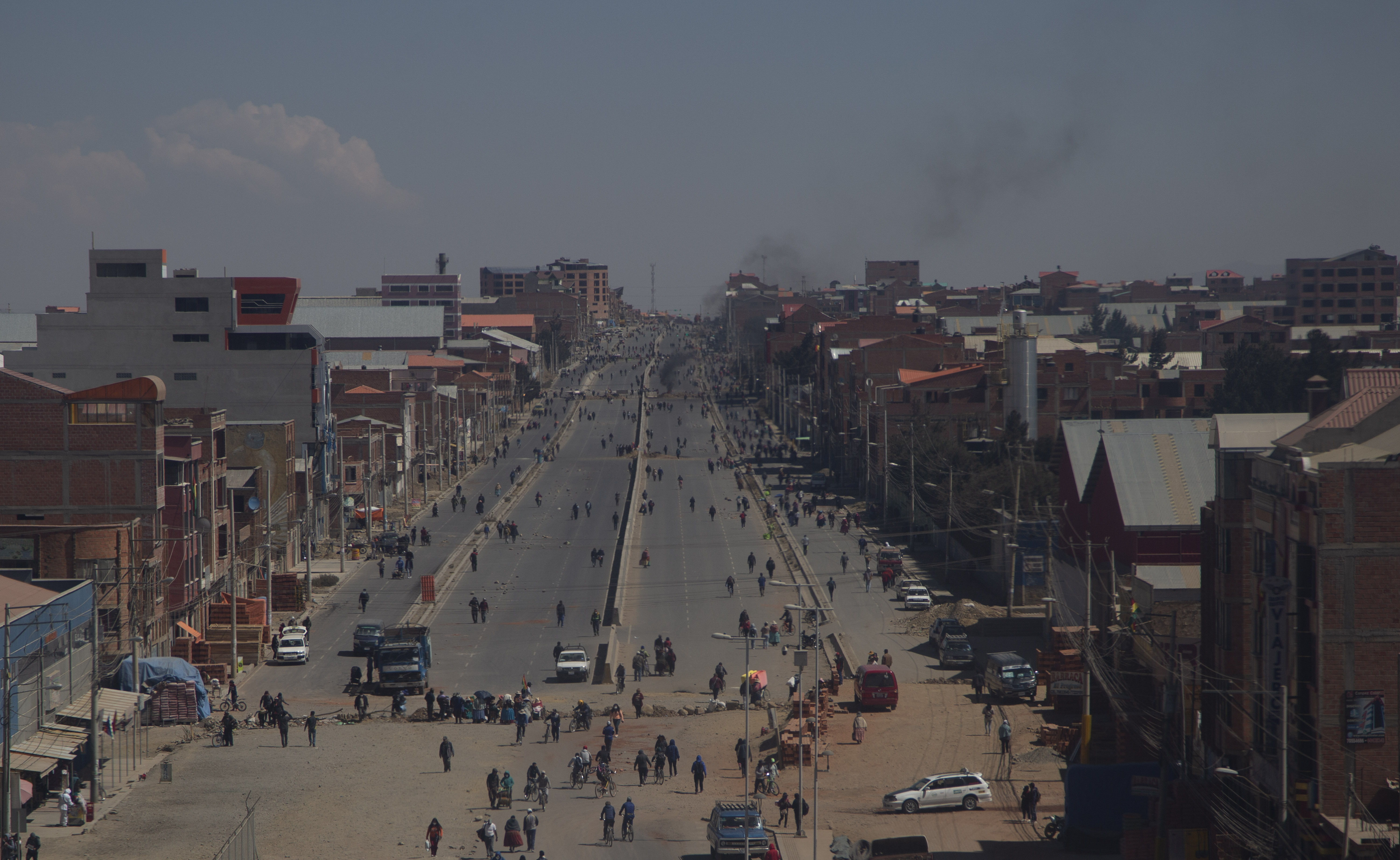 Demonstranter har blockerat en huvudled i El Alto, Bolivia.