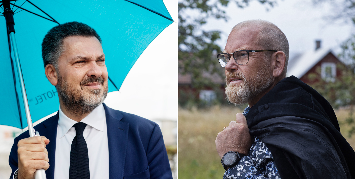 – De svenska parterna borde inte frukta införandet av minimilöner, säger Europafackets generalsekreterare Luca Visentini (till vänster), som gått från hårdnackad motståndare till förespråkare för lagstadgad lägstalön. – EU tar inte hänsyn till det som generationer varit med och skapat i Sverige, säger Byggnads ordförande Johan Lindholm från sitt distansarbete på Öland.