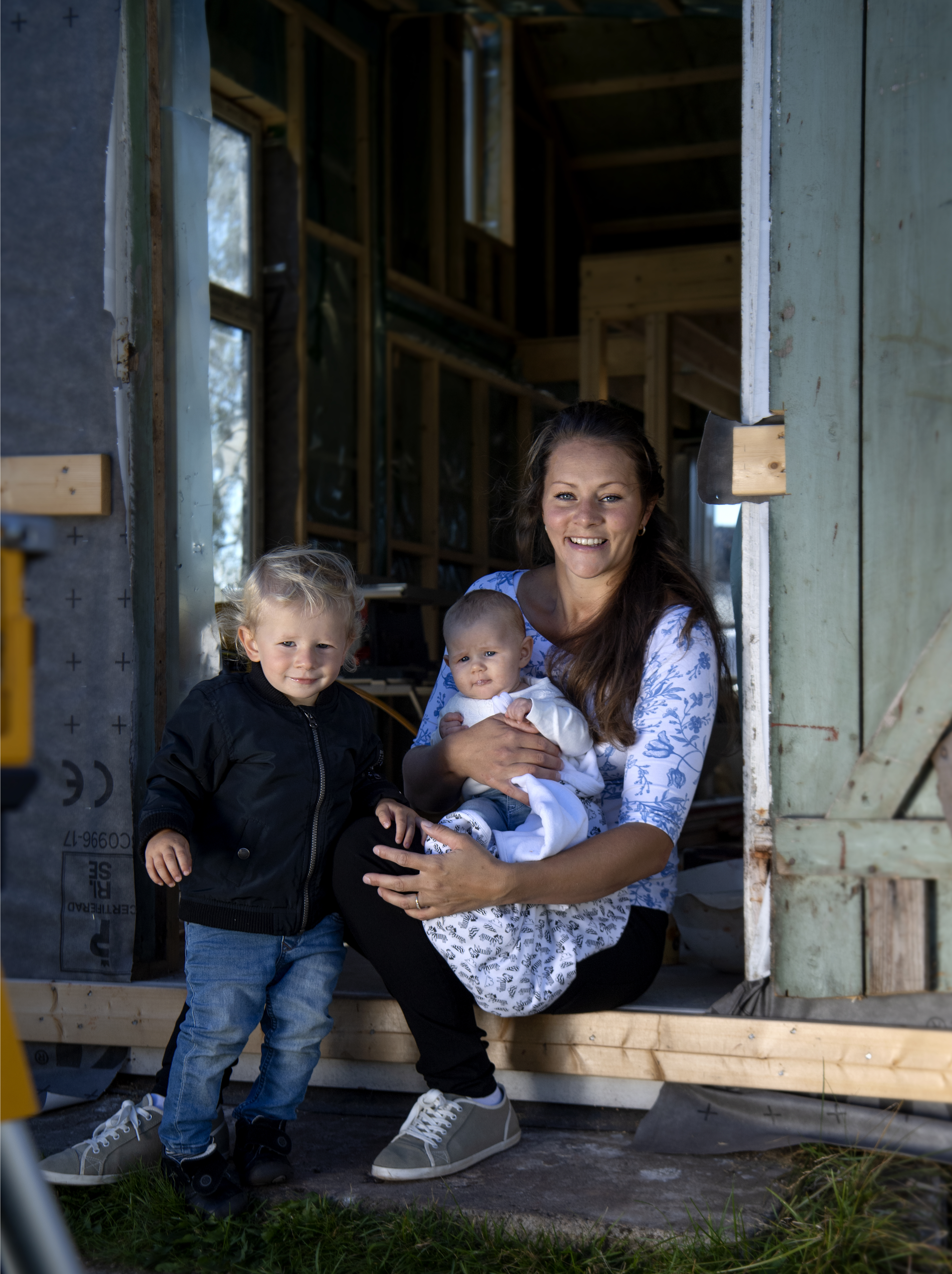 Jonna Heller kommer fram till den vita villan, sätter sig vid altanen och plockat upp den nyss vaknade Anton i knät. Han kikar nyfiket in i skärmen och ler plirigt medan Jonna Heller fortsätter.