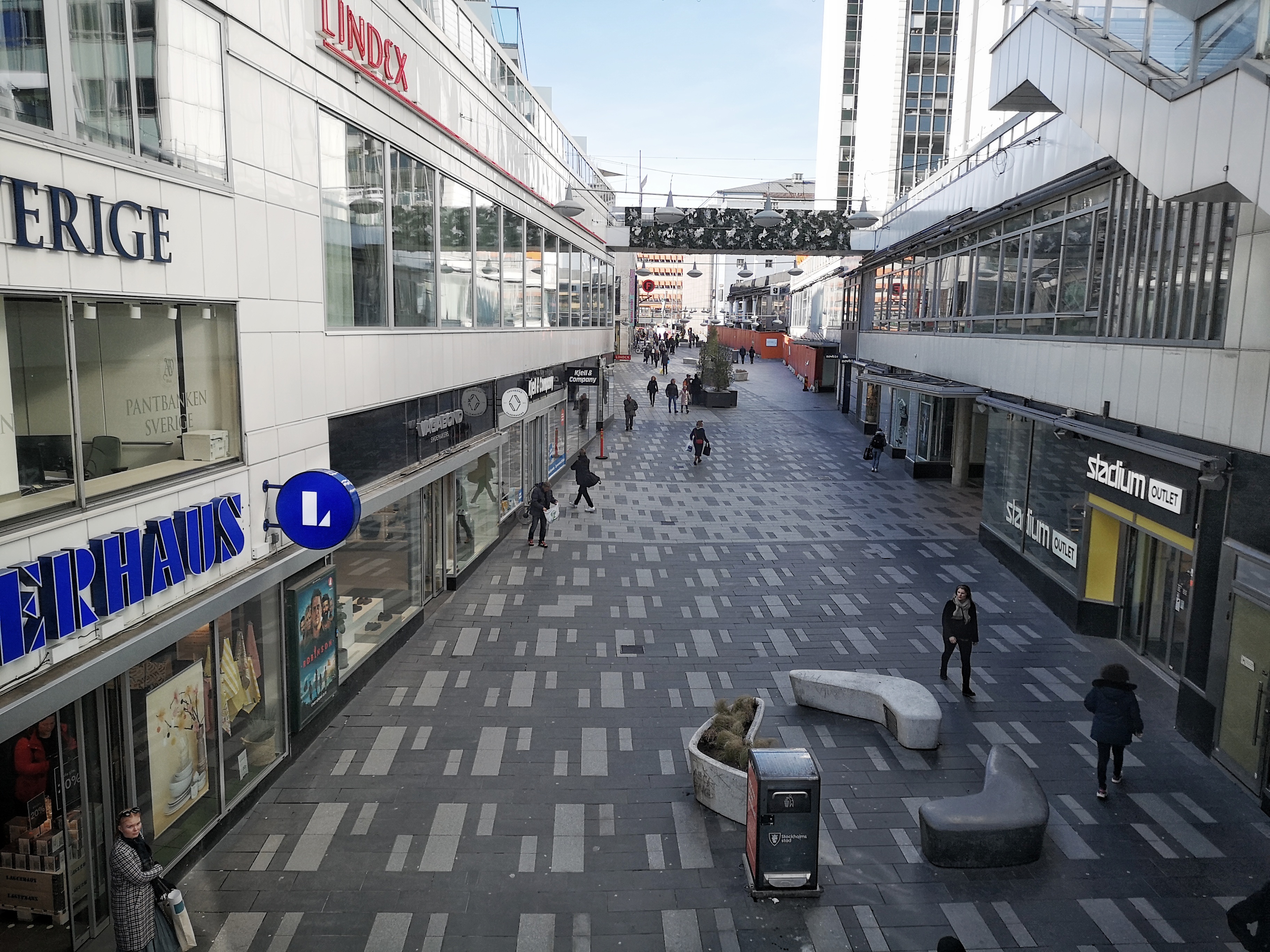 Många butiker drabbades av minskat tryck under coronakrisen. Så här såg det ut vid Hötorget i Stockholm.