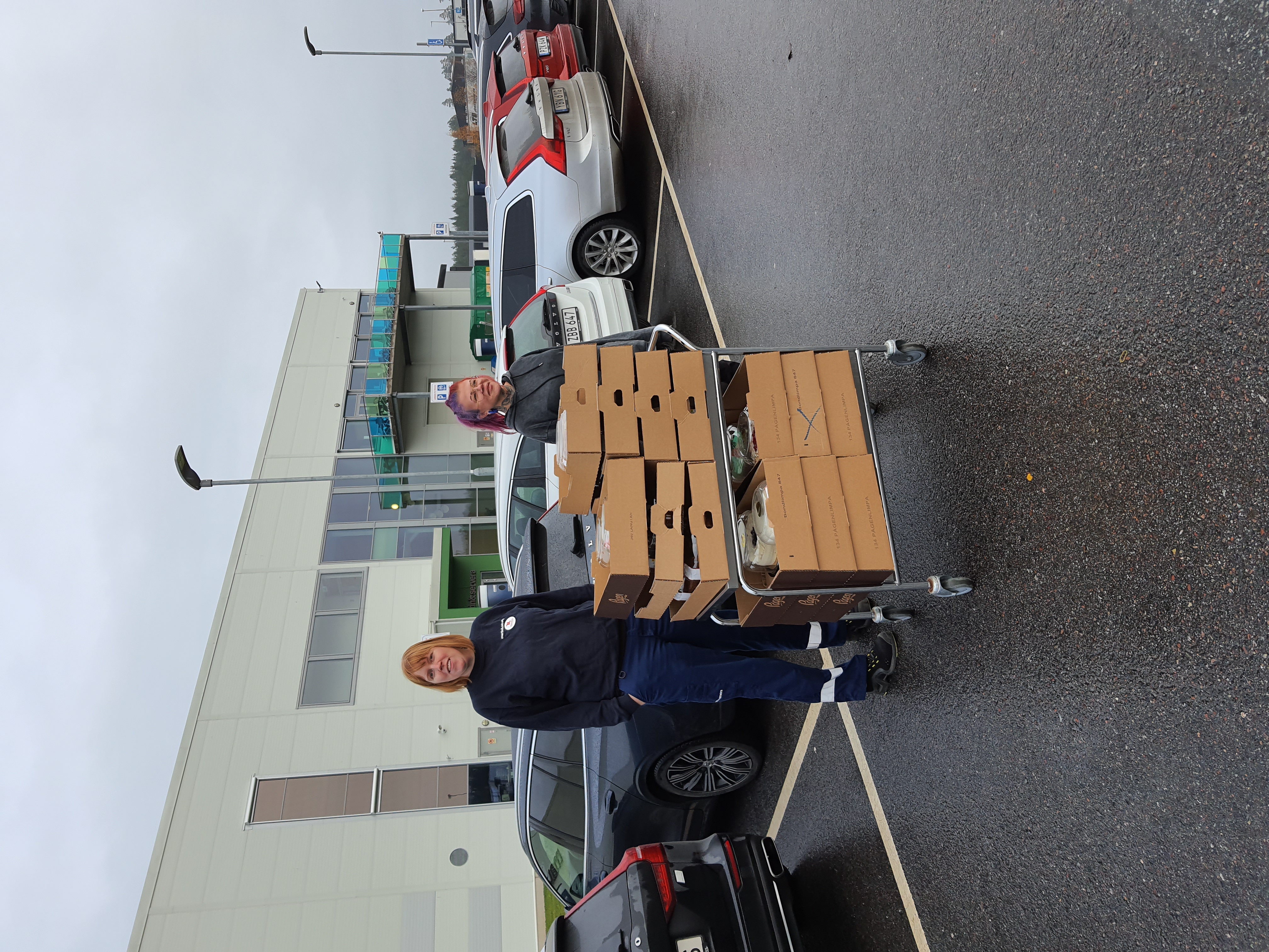 – Vi pratade just om det att vi är glad att vi slipper stå ute idag – det regnar här i Enköping, haha! Och målet är ju att komma överens om ett avtal. Vi var ju väldigt förbereda, så en del medlemmar kan nog tycka att det är lite småtråkigt att det inte blev strejk. Men de flesta har tyckt att det var väldigt skönt att det inte blev. Nu firar vi med tårta som avdelningen just kom hit med!
