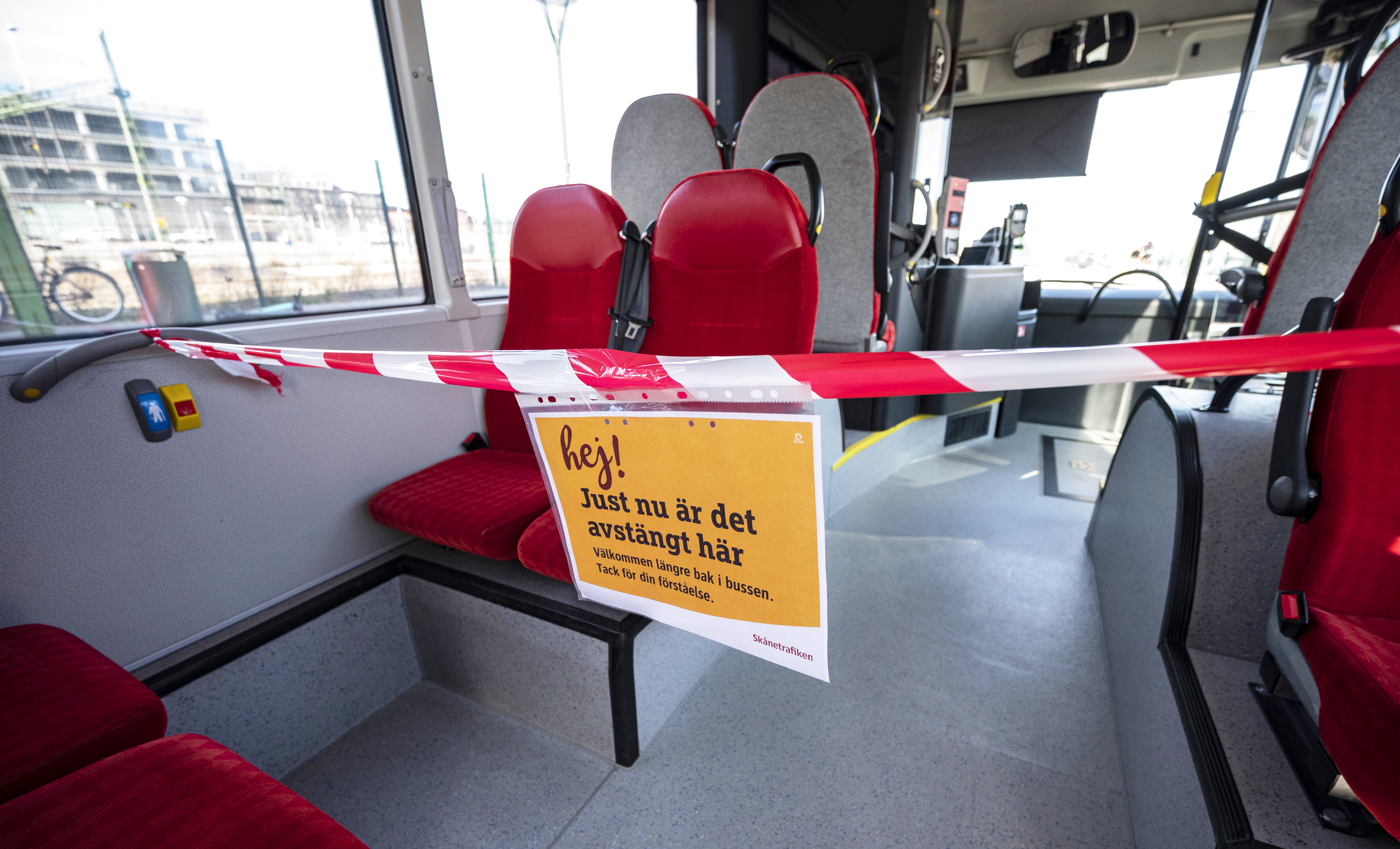 Skånetrafikens stadsbussar stängde framdelarna på bussarna för att skydda förarna under coronpandemin.