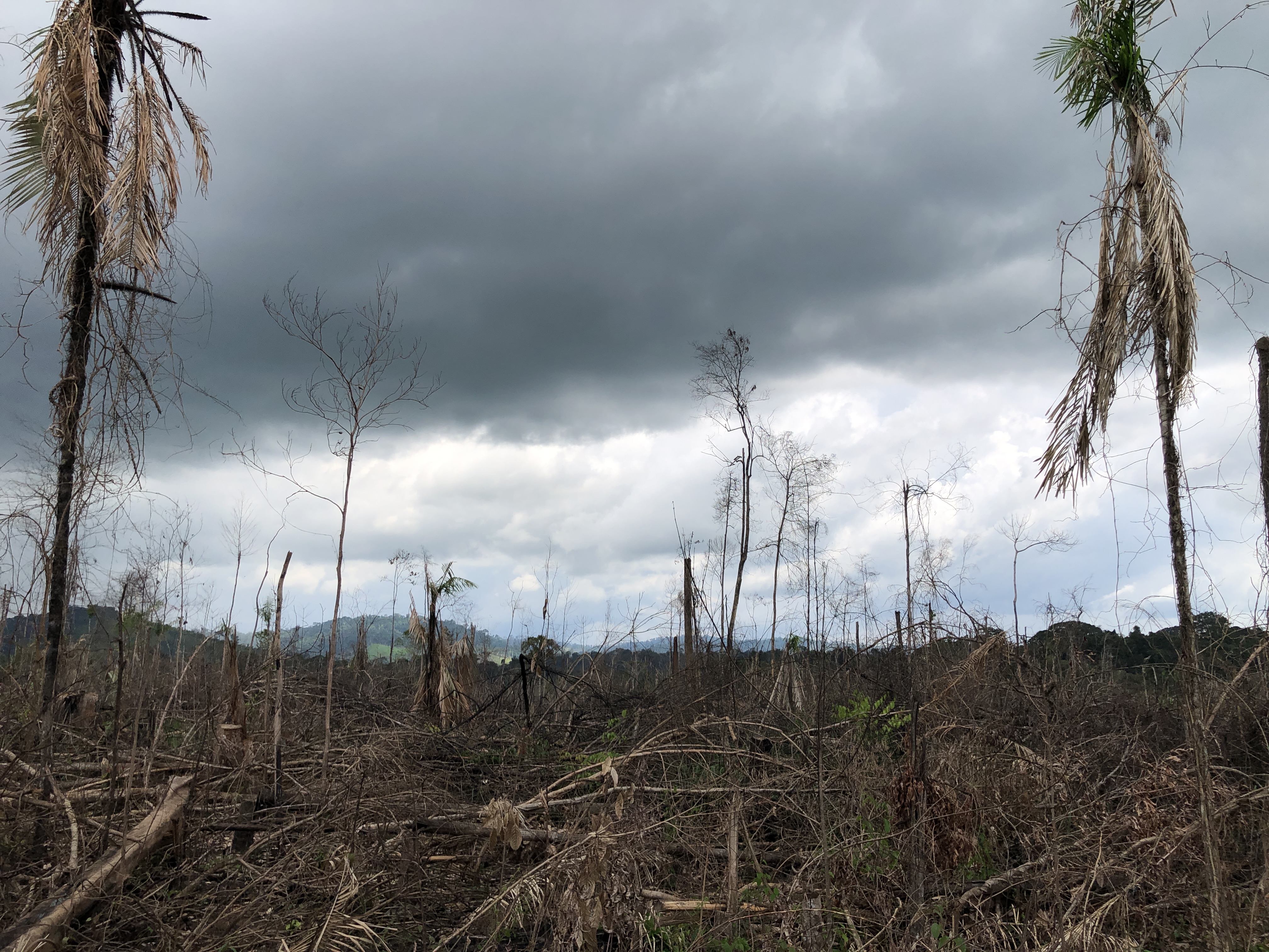 Skog som bränts för att bli beteshagar vid lervägen några kilometer från Osvalinda Pereiras gård.