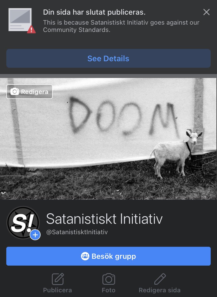 Satanistiskt Initiativ stängs av från Facebook: Vi får ändå som vi vill