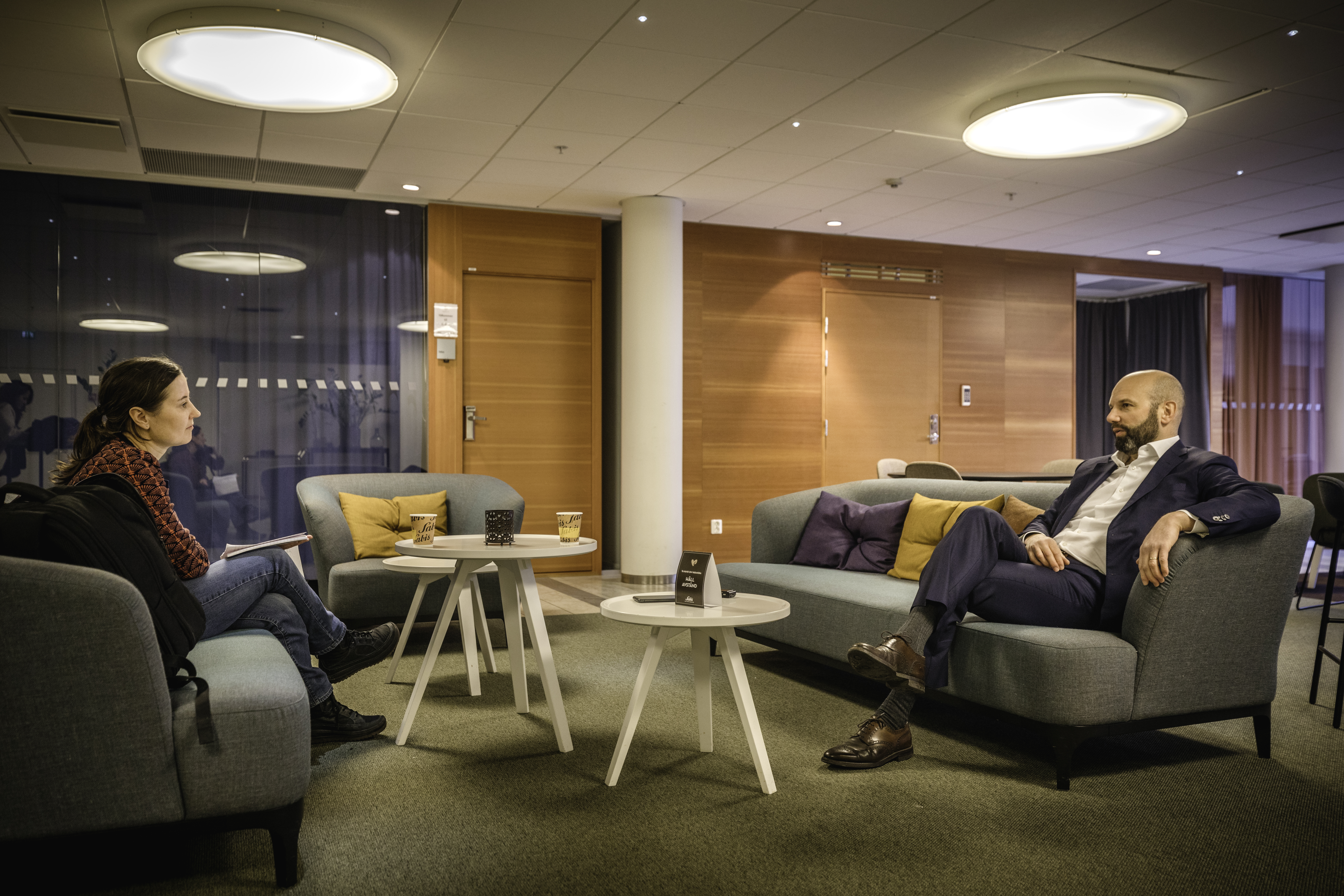 På avstånd i en coronaödslig foajé på Svenskt Näringsliv möter Arbetet Mattias Dahl knappt två månader efter att las-förhandlingarna avslutades.