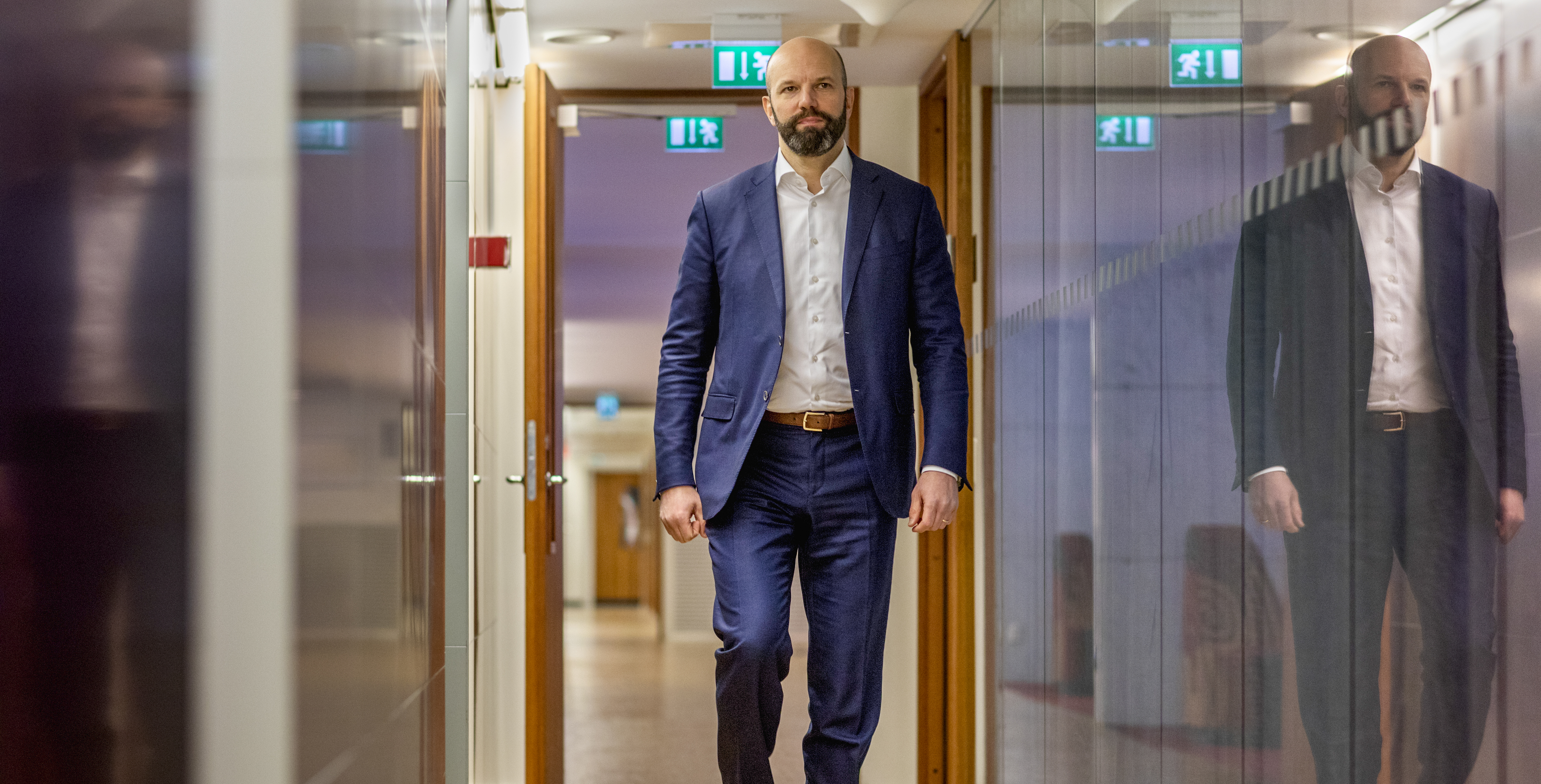 Mattias Dahl i det som kallas ”suckarnas korridor” på Svenskt Näringsliv. Här ledde intensiva förhandlingar fram till las-överenskommelsen.