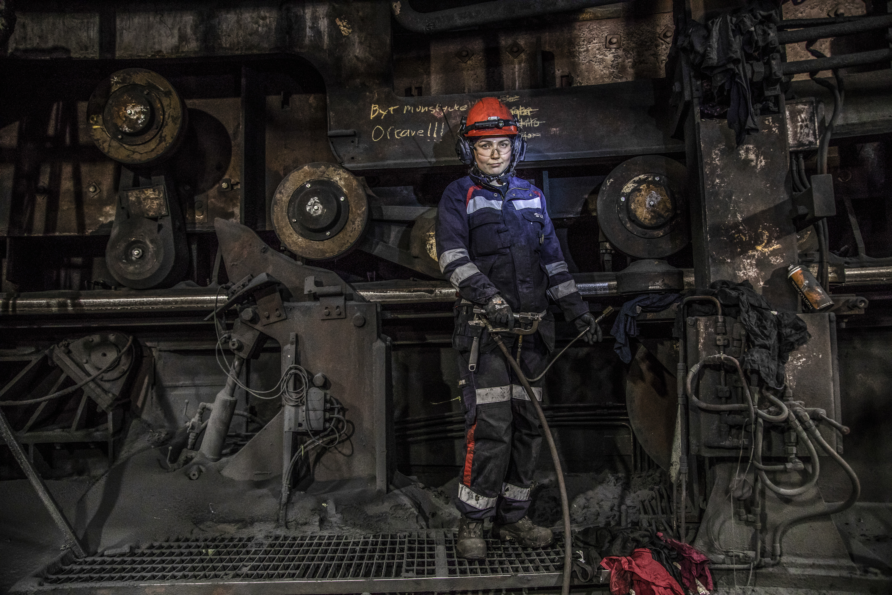 Karin Stöckel, smörjare, Kiruna: – Jag smörjer motorer, pumpar och växellådor med trasor och smörjmedel och kontrollerar maskinerna. Jag är i konstant rörelse på betonggolv och bär tungt.