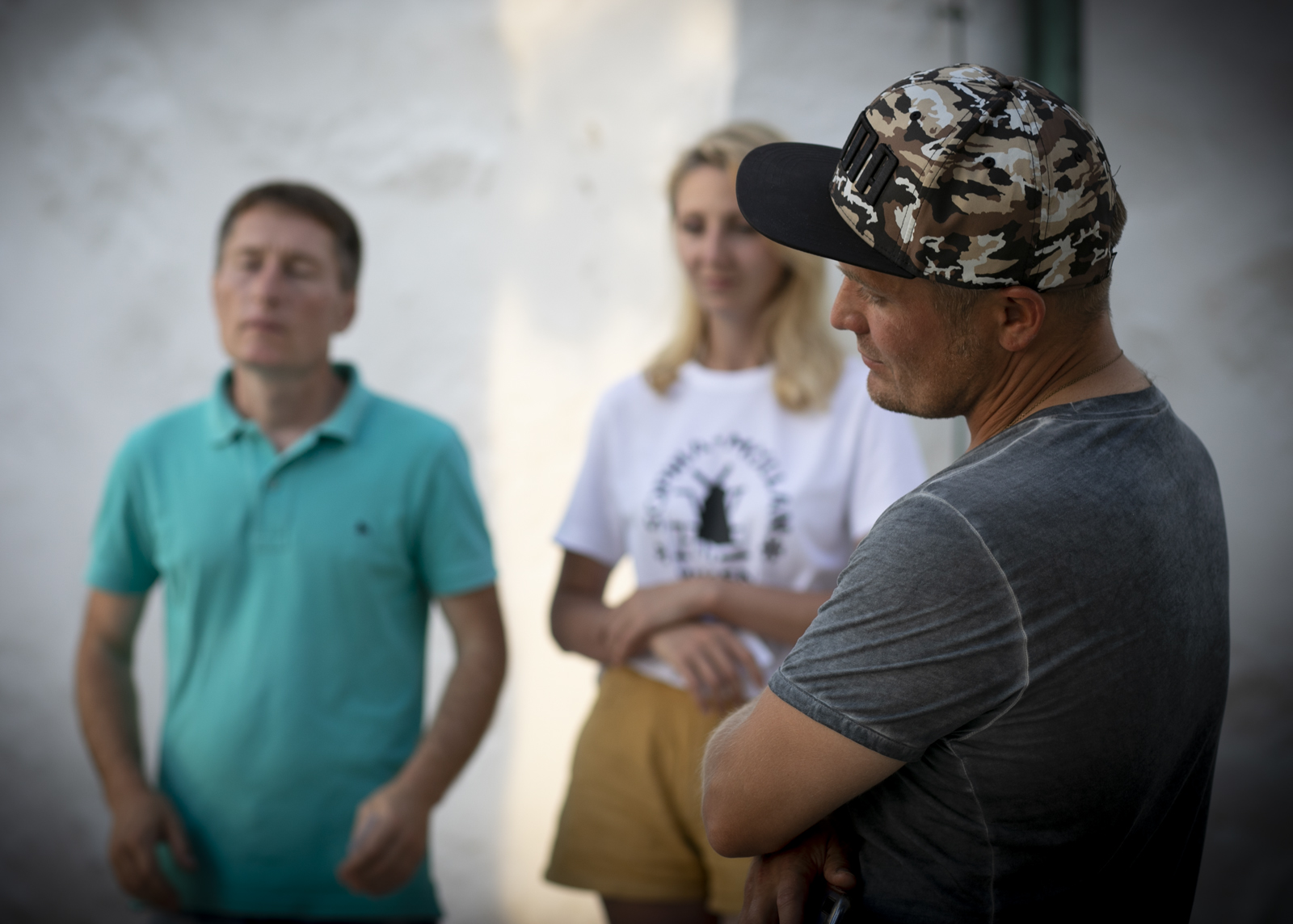 Yevhen (till höger i förgrunden), Volodymyr och Yuliia.