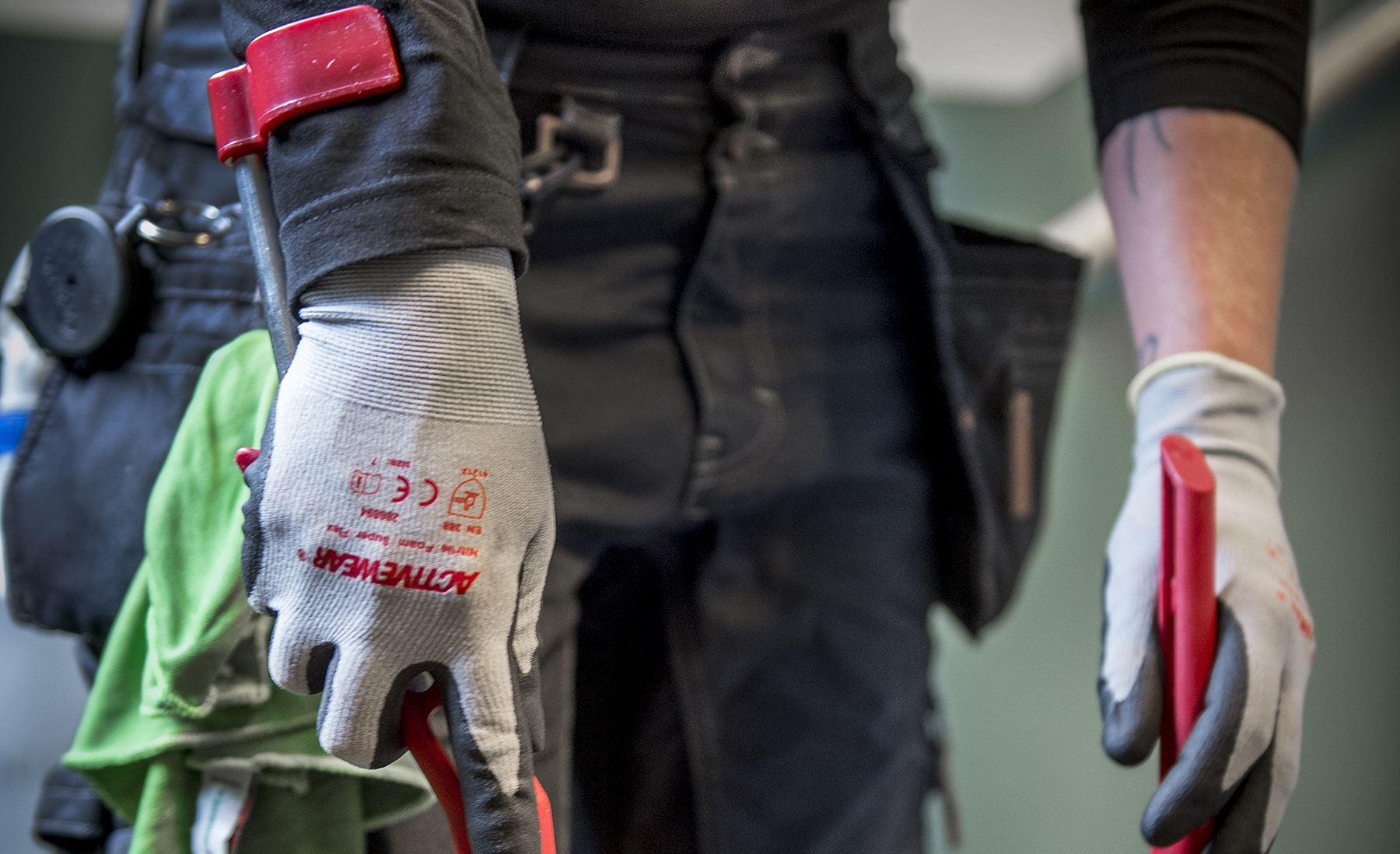 Använd handskar och gärna handledsstöd på sopen.