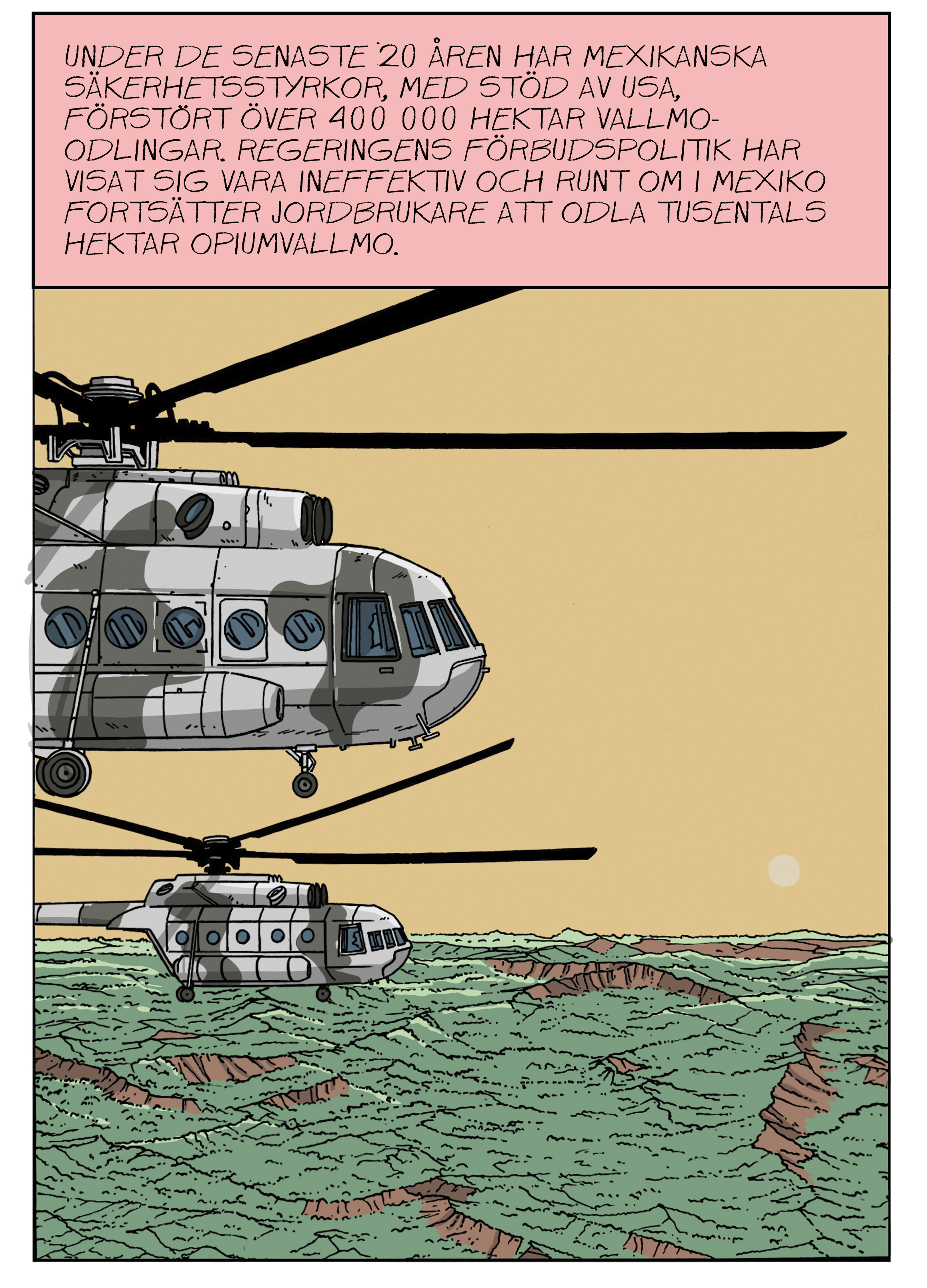 Efter Afghanistan och Myanmar är Mexiko världens största opiumproducent. Den internationella narkotikahandeln omsätter mångmiljardbelopp, men längst ned i näringskedjan finns fattiga lantbrukare som sällan har andra försörjningsmöjligheter.