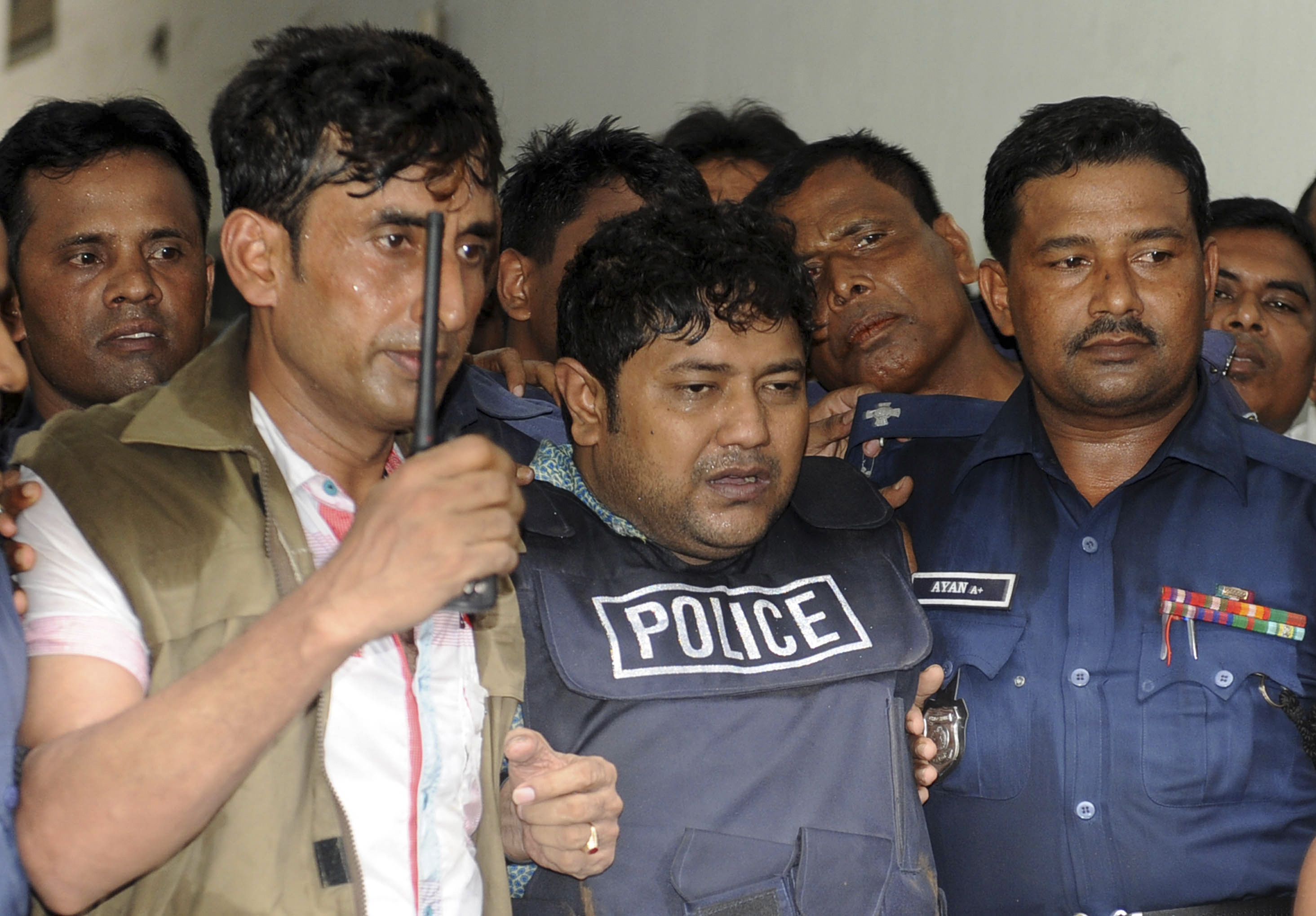 Sohel Rana grips av polis efter det dödliga fabriksraset i Bangladesh.