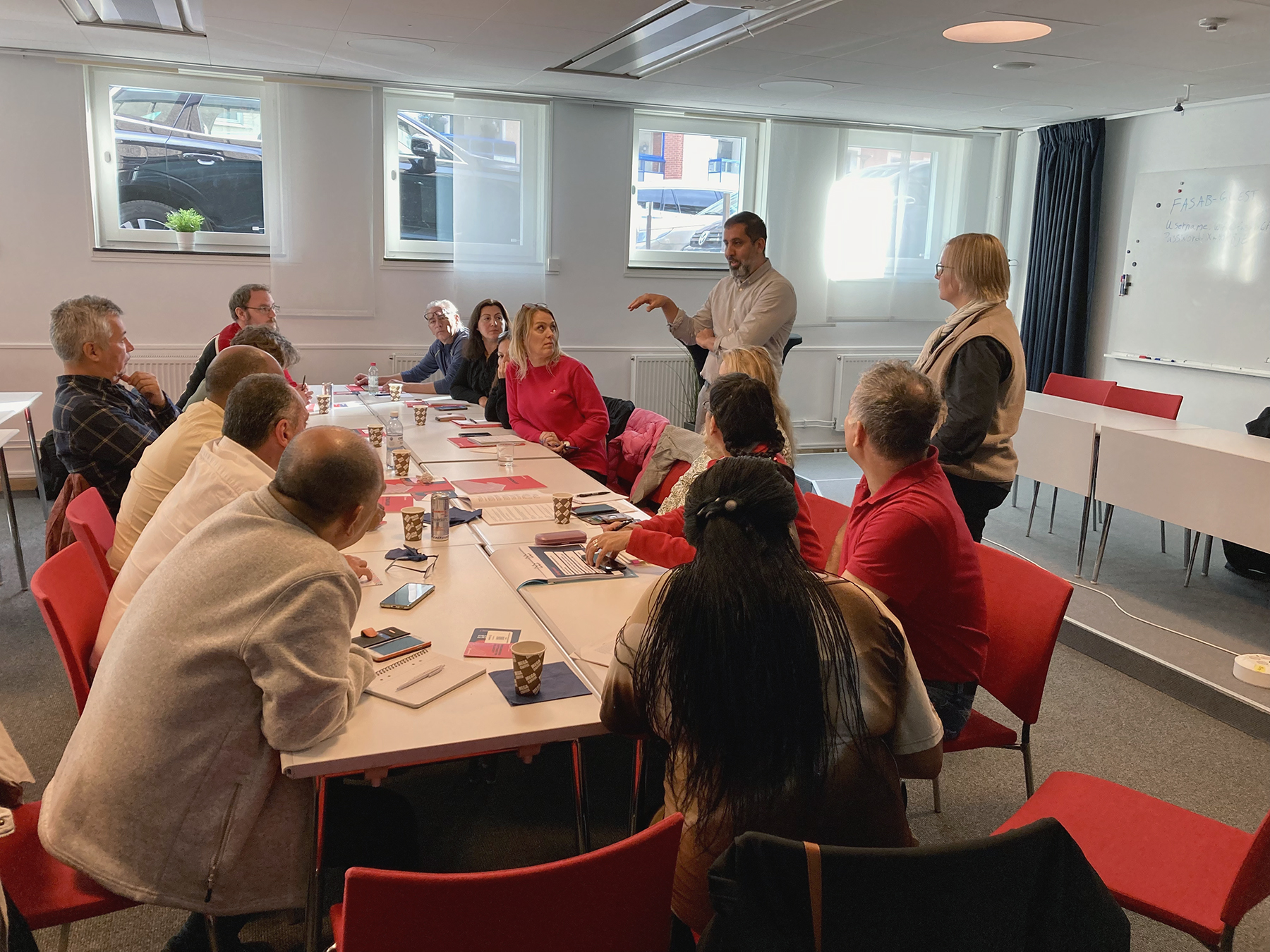 De förtroendevalda fick dela in sig i mindre diskussionsgrupper utifrån branscher. Här är städgruppen. Ombudsman Jamal El Mourabit på region ost har ordet.