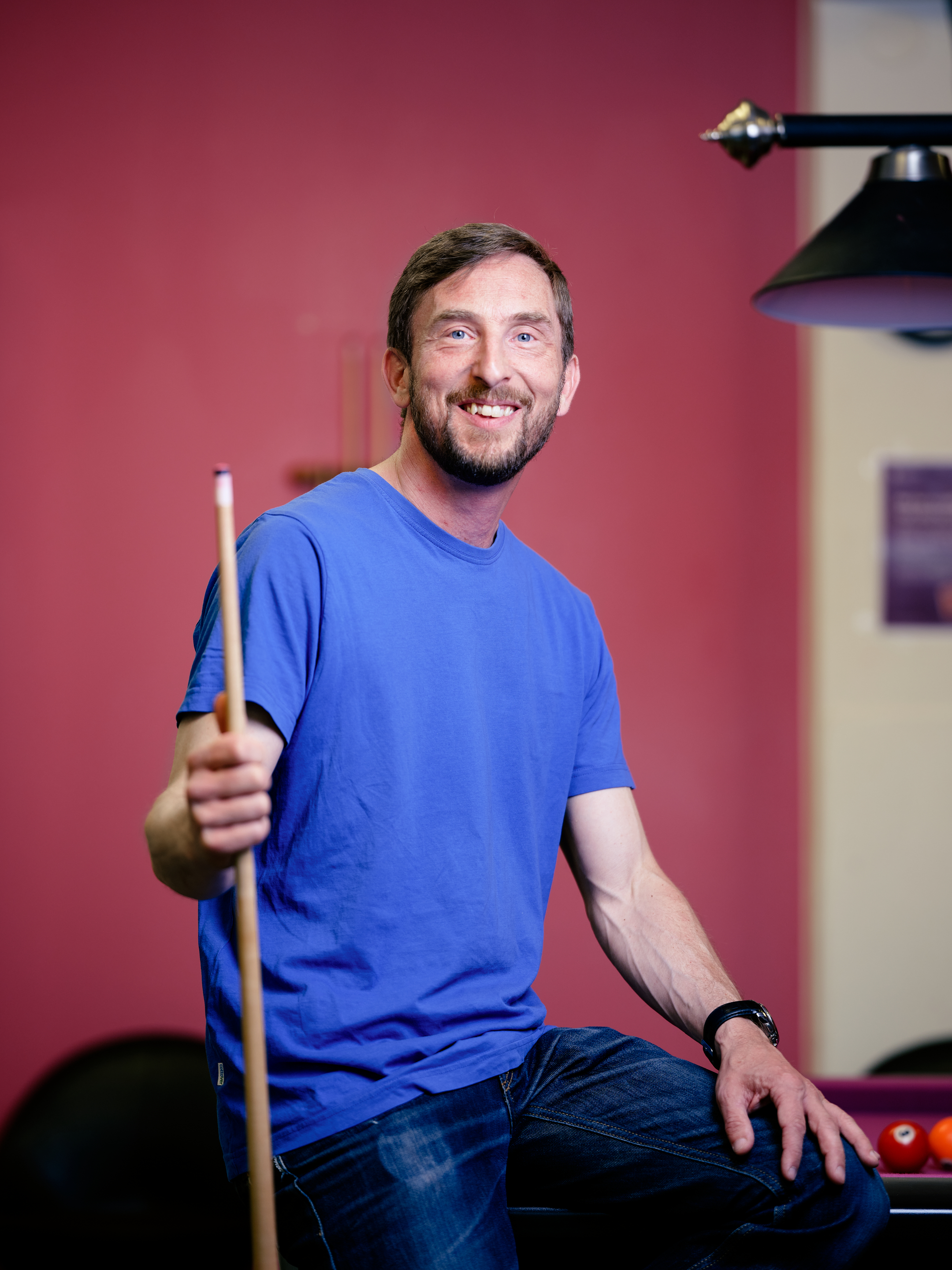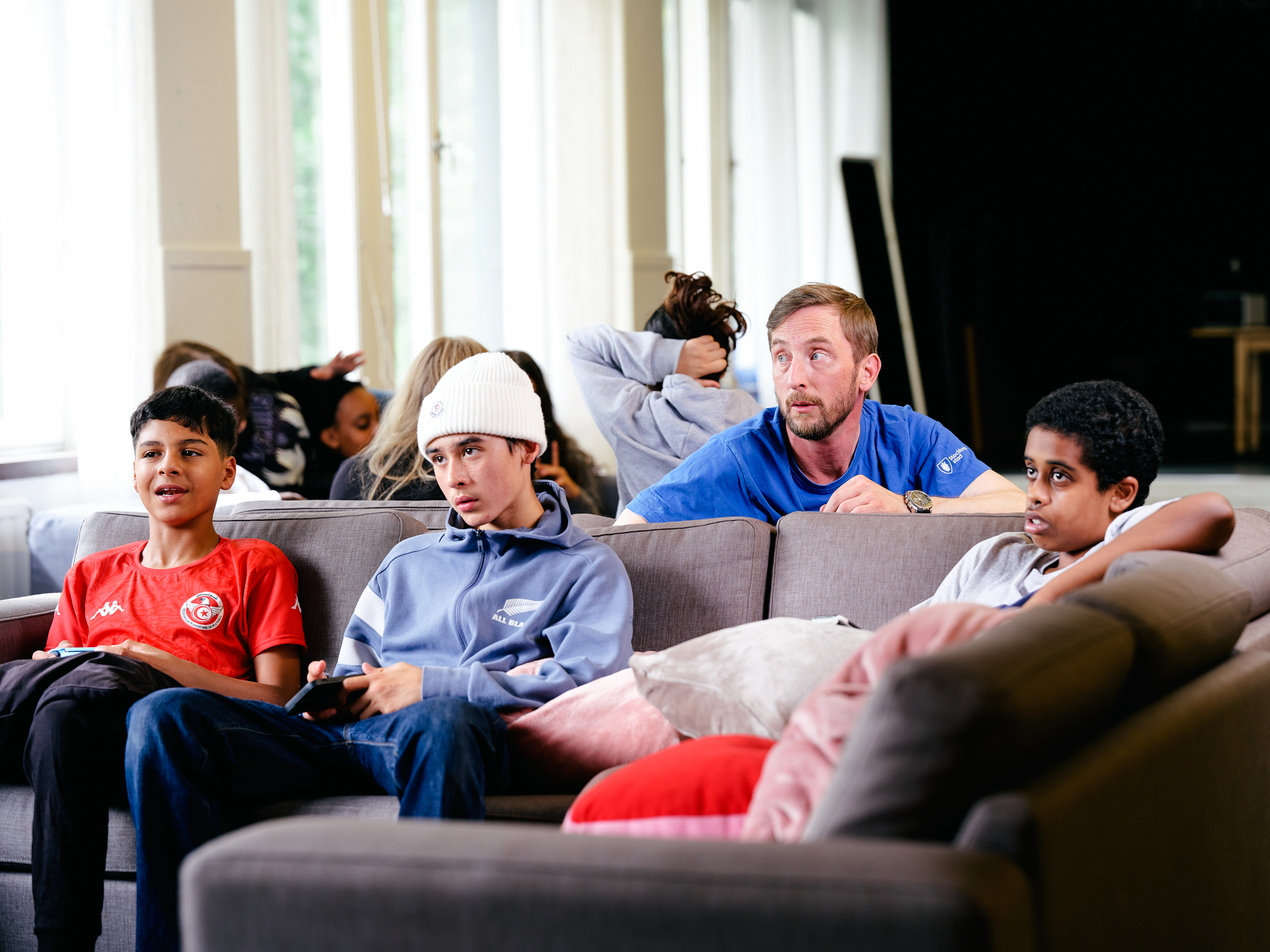 Fritidsledaren Erik Bjertsjö med ungdomar på fritidsgården Morris i Farsta.