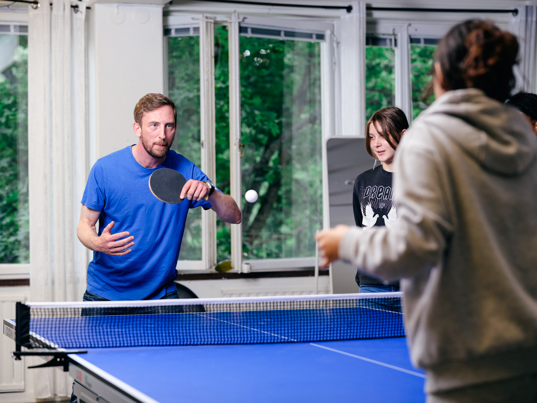 Några tjejer hojtar på Erik, de vill spela pingis. Erik tar upp ett racket, slår iväg en serve. Till ljudet av en studsande bordtennisboll hinner livet avhandlas. Det hjälper nog att ungdomarna känner att Erik nästan är som en av dem, en like.