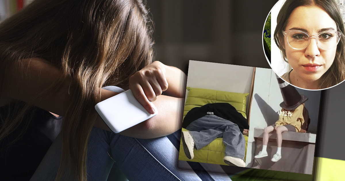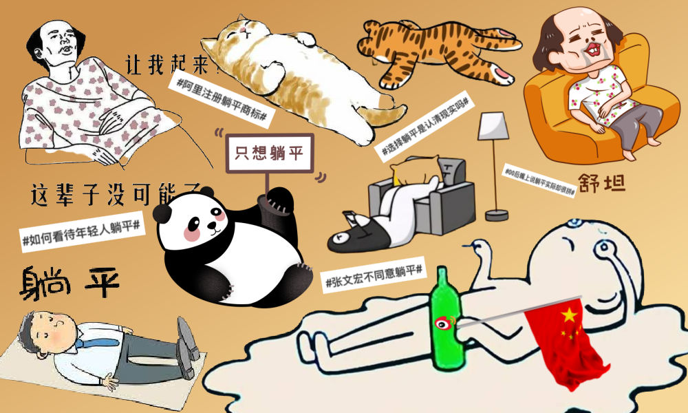 Illustration över Tang Ping som är ett begrepp som ska peka på pressen under den kinesiska jobbkulturen.