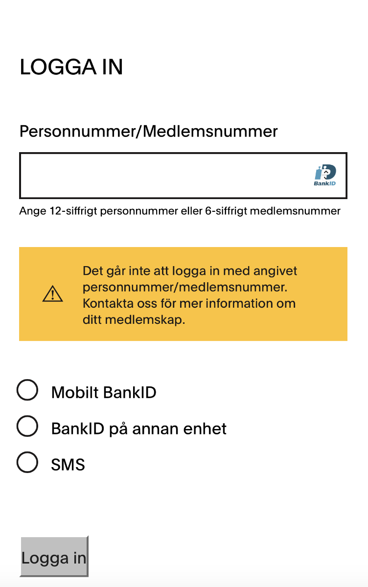 När du tidigare loggat in på IF Metalls medlemssida har allt flutit på – om du varit medlem. Då har du hänvisats vidare till legitimering via bank-id på mobilen. Om du inte varit medlem har du i stället direkt fått ett felmeddelande: ”Något gick fel, försök igen.”