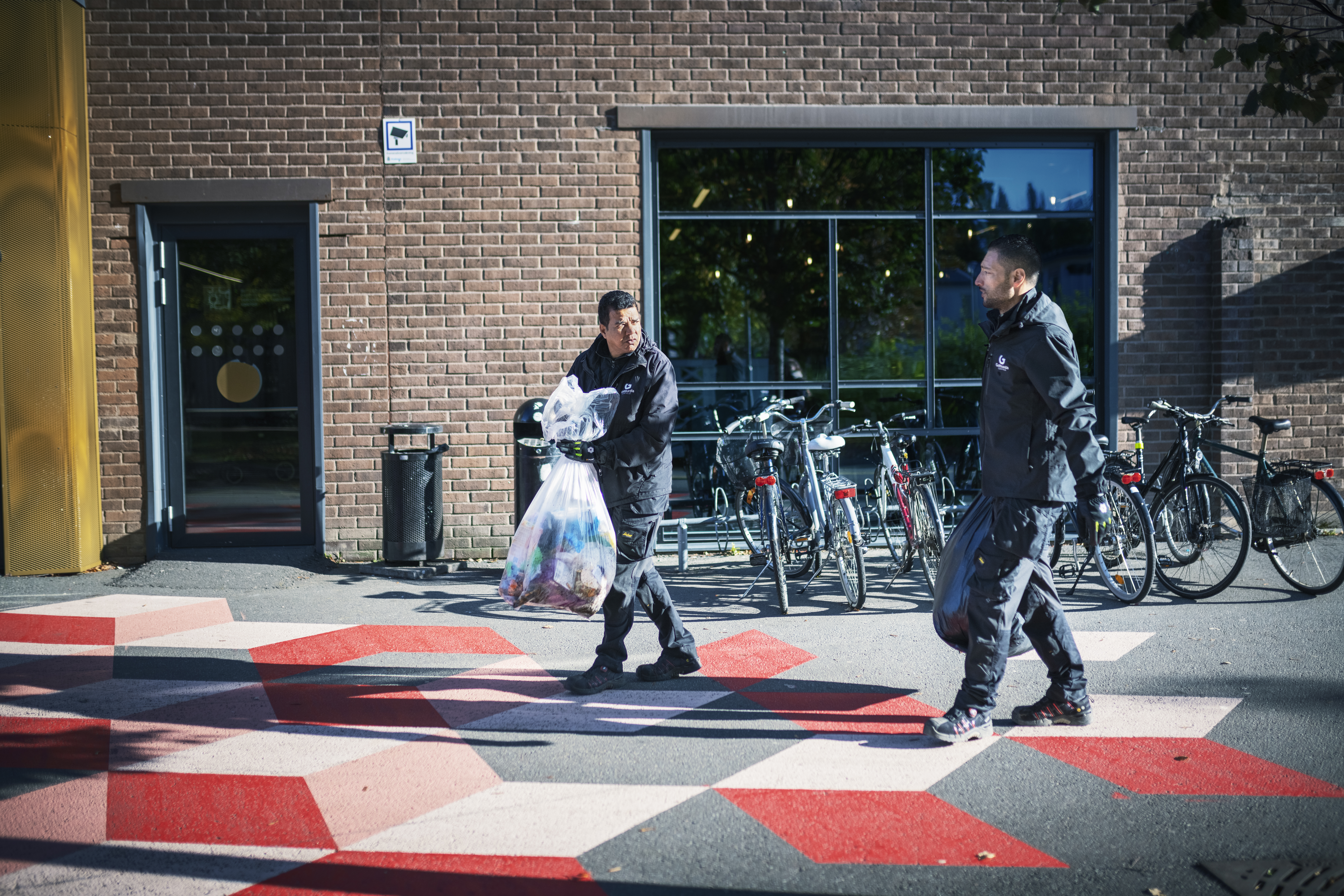 Det är måndag morgon och höstkylan biter i kinderna. Fastighetsskötarna Yahya Abdeen och kollegan Shane Christopher Lee rör sig snabbt när de städar upp höstlöven som ligger i drivor runt Gottsunda centrum.