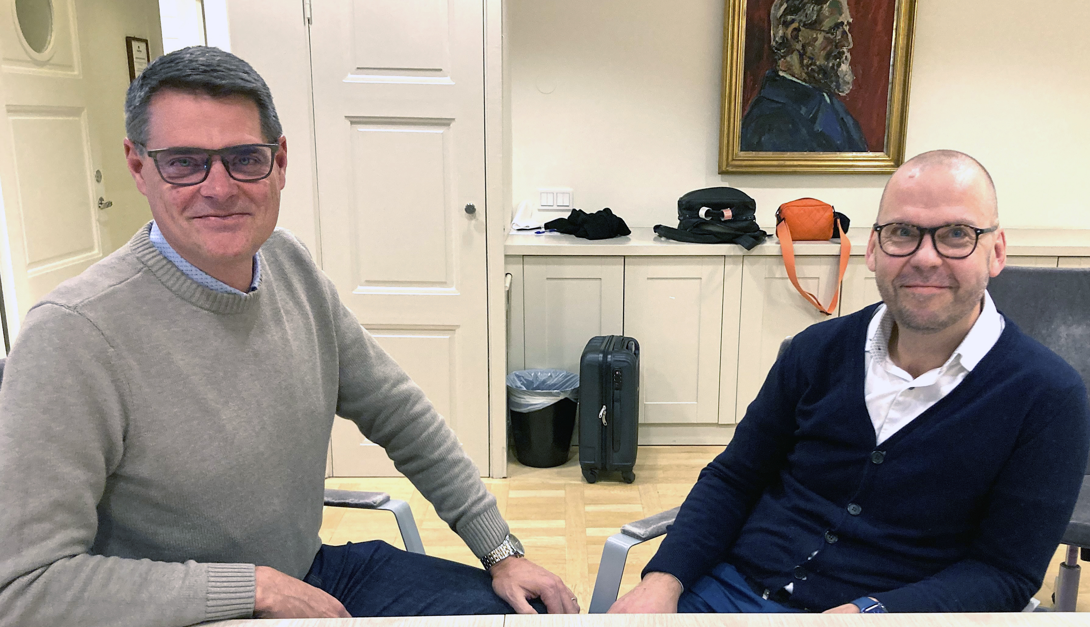 Det svenska Elektrikerförbundets förhandlingschef Mikael Pettersson med sin finska kollega Jari Ollila.