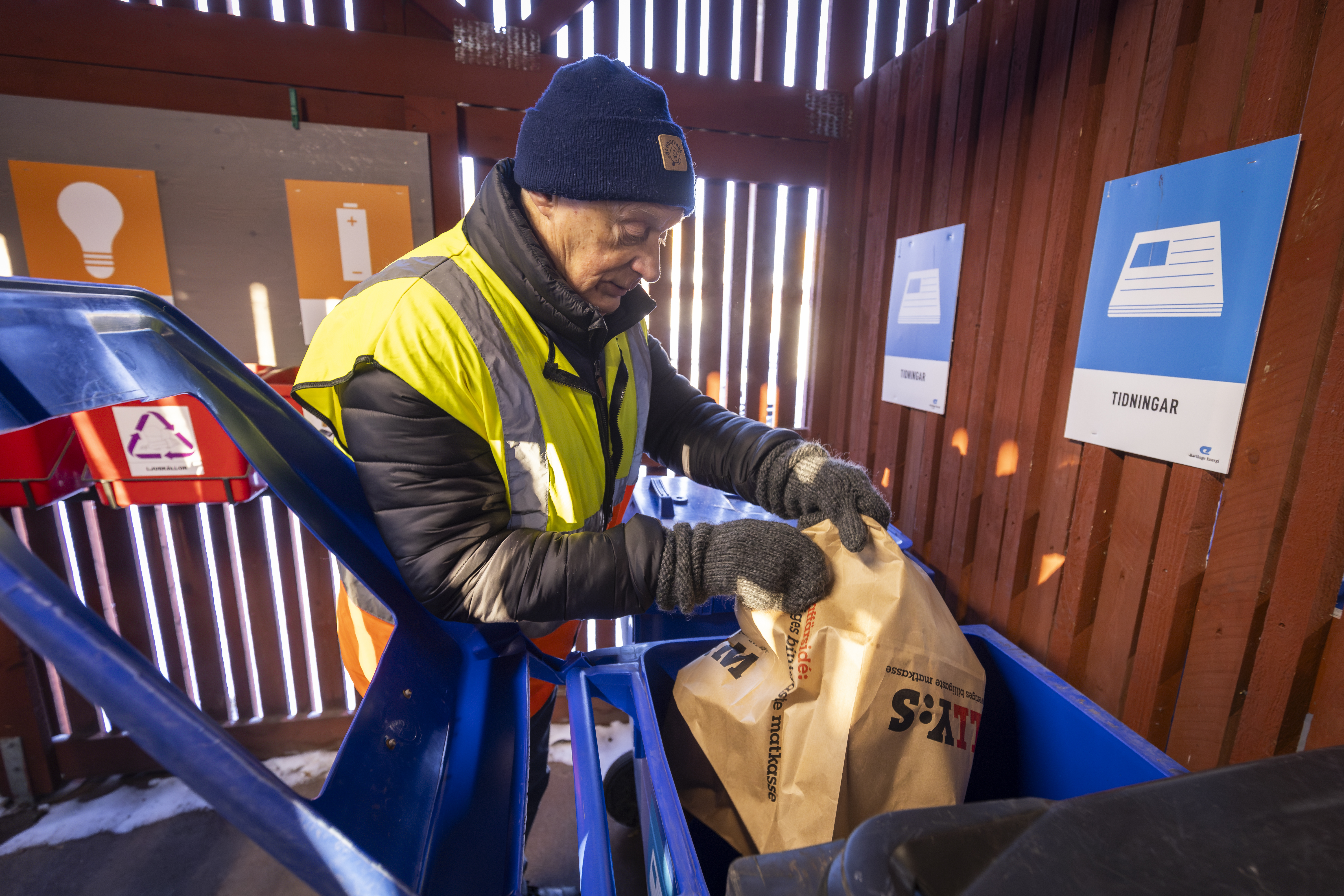 – Det är väldigt kostsamt att tömma sådana kärl, om vi får ner det brännbara avfallet behöver vi inte betala lika många utsläppsrätter. Och där har vi verkligen lyckats. Vi har fått ner restavfallet från 194 kubikmeter till 65 kubikmeter. På det har vi sparat en och en halv miljon, säger Fredrik Gedin.