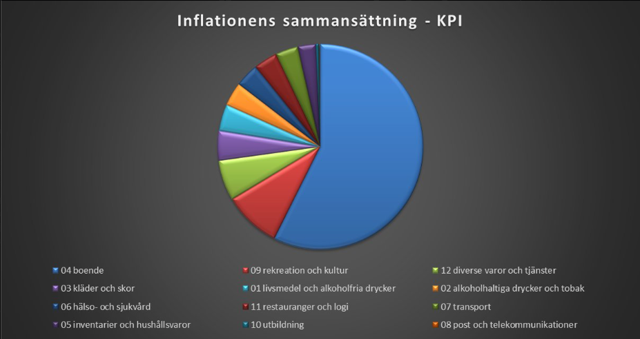 Som synes i grafen nedan består närmare bestämt 57 procent, den blåa delen av diagrammet, av den inflation som skapats av Riksbankens egen räntepolitik.