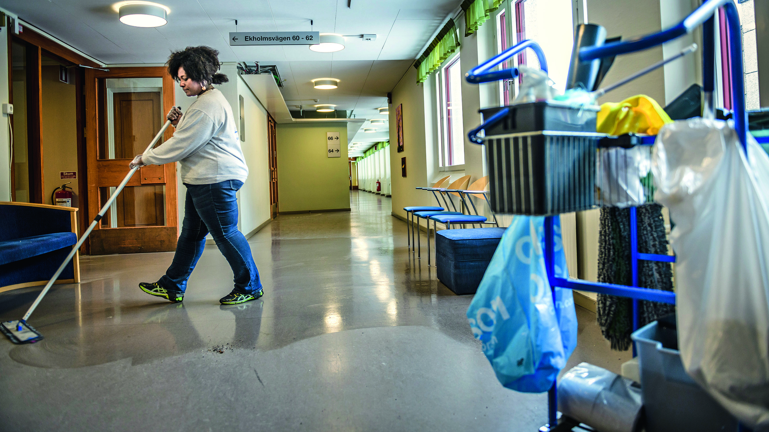 – Dessutom har vi under tre års tid krävt att det ska göras individuella riskbedömningar för belastningsergonomi vid handintensivt arbete för fönsterputsare och golvvårdare, säger Jeanette Cervin, huvudskyddsombud för Fastighets på Coor och en av de fyra som står bakom anmälan.
