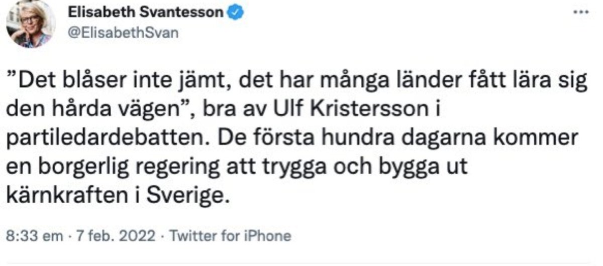 I valrörelsen lovade nuvarande finansminister Elisabeth Svantesson att kärnkraften skulle säkras och byggas ut inom 100 dagar efter ett regeringsskifte. Hundra dagar gick och Ulf Kristersson preciserade löftet: innan valet 2026 skulle första reaktorn vara igång.