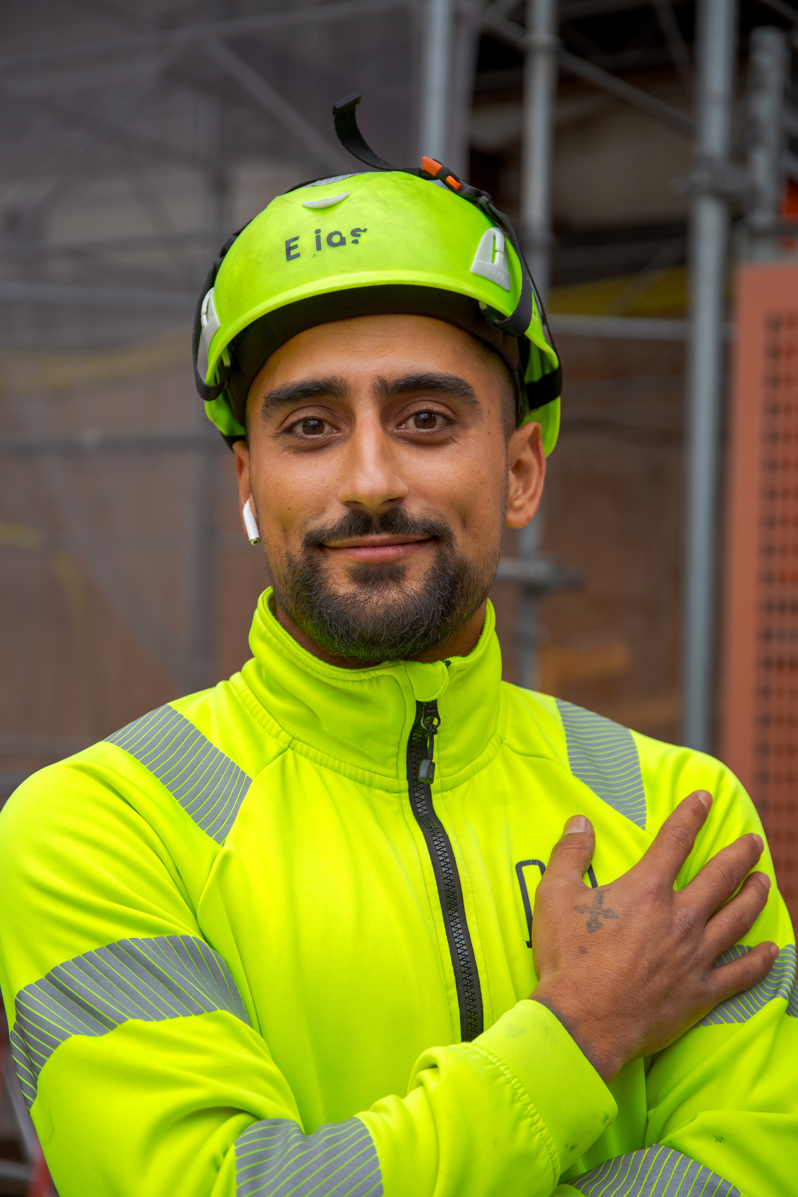 Jellal Said jobbar som mätare på bygget. Det händer att det är öppna schakt eller väldigt högt i tak där han ska mäta.