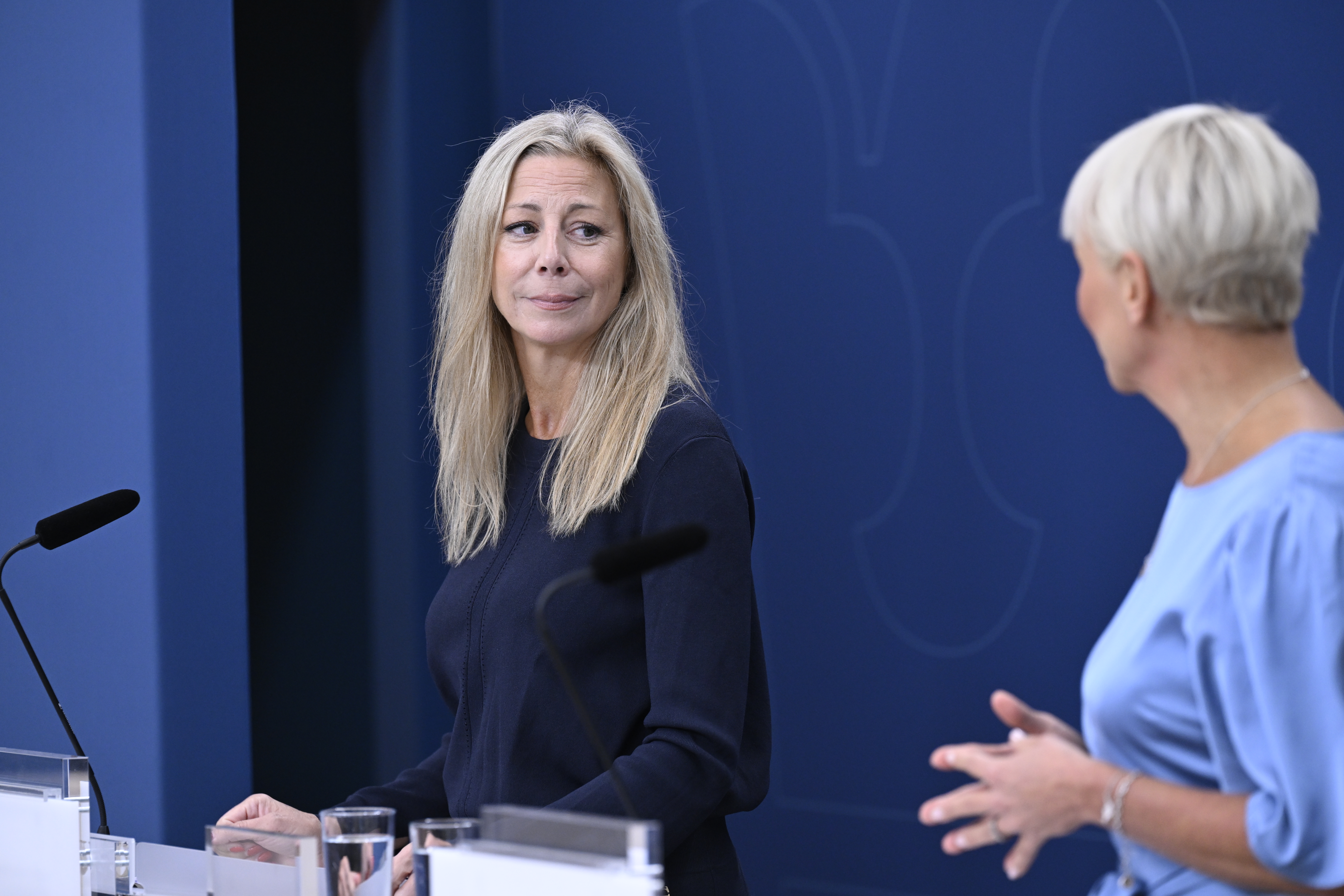 Sverigedemokraternas gruppledare Linda Lindberg (SD) och äldre- och socialförsäkringsminister Anna Tenje (M).